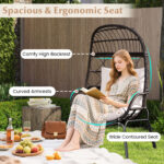 Key Feature • • Extended Wicker Beauty: Crafted with open woven mix brown PE rattan, this egg chair combines breathability and comfort with fade and sunlight resistance, ensuring durability and long-term use in outdoor settings. • • Spacious and Ergonomic Seat: Featuring a comfy high backrest, curved armrests, and wide contoured seat, this outdoor rattan lounge chair delivers unmatched comfort, perfectly making your whole body more relaxed.