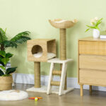 PawHut Cattail Weave Cat Tree For Indoor Cats Kitty Tower With Rattan Cat Condo, Wicker Bed, Ladder, Washable Cushions