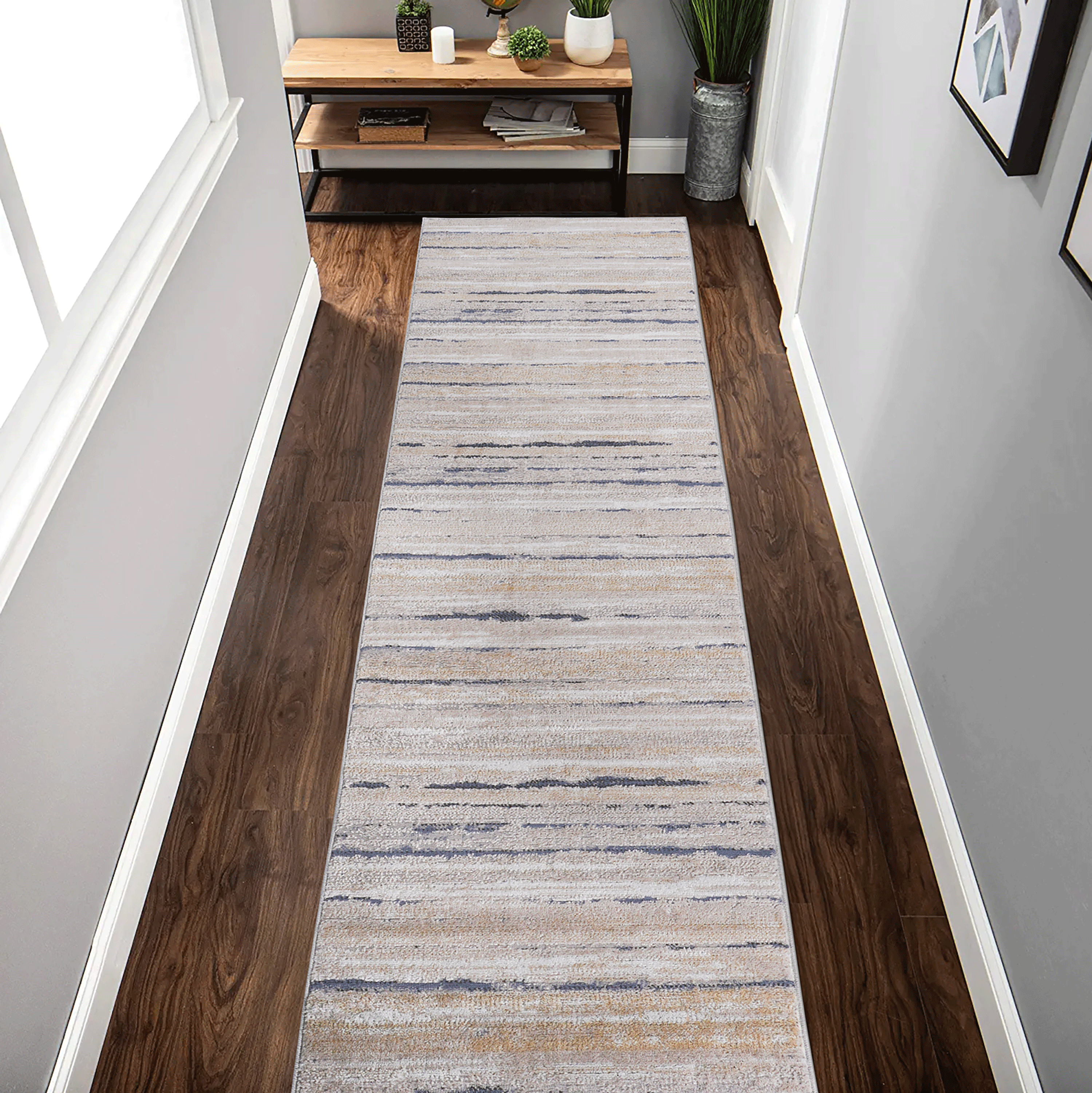 PAYAS 2X8 Ivory Blue Striped Runner Rug is designed for style, comfort, and everyday use.