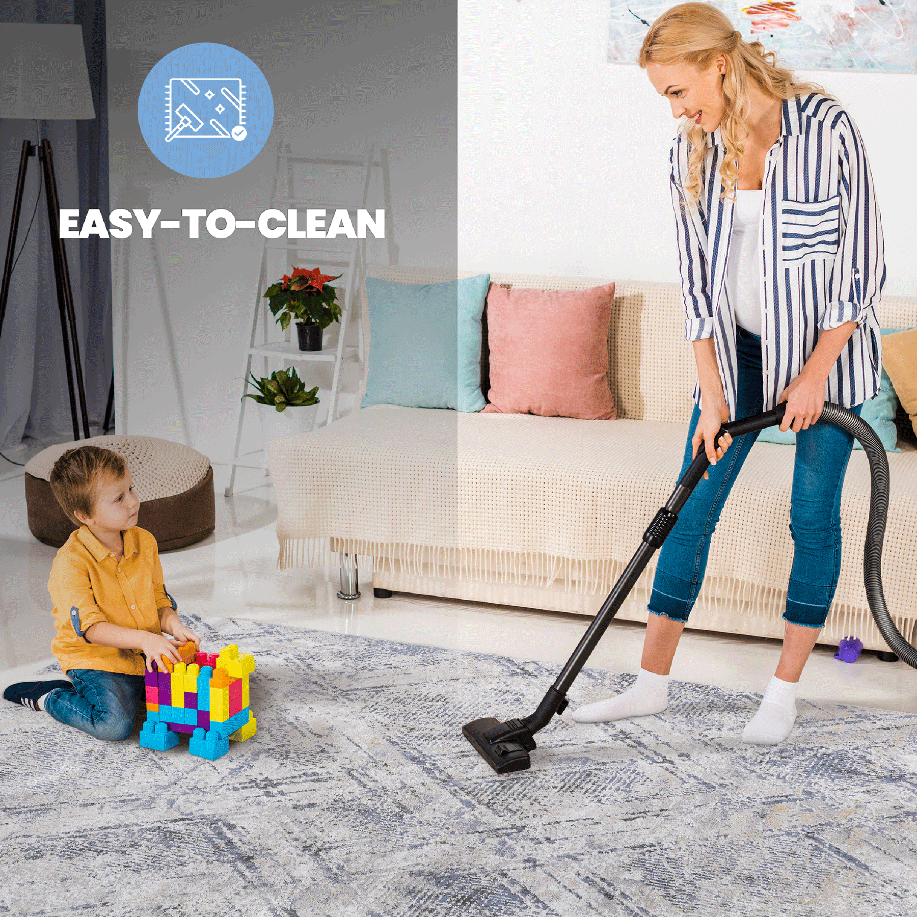 • SpecificationProduct Information Product Type :Single Box ProductProduct Name:PAYAS Collection 7×9 Blue / Grey / Geometric Runner RugPlace of Origin:TurkeyMain Color:Blue+GreyMain Material:PolyesterProduct DimensionsAssembled Length (in.):120.00Assembled Width (in.):93.00Assembled Height (in.):0.28Product Weight (lbs.):22.00Package SizeLength (in.):90.00Width (in.):6.50Height (in.):6.50Weight (lbs.):22.55Product FeaturesTrendy Style: Design beautifully enhances any room of the home, from the living room, dining room, bedroom, entryway, nursery, dorm room, study, home office, or eat-in kitchenStain Resistant & Non-Shedding: Machine-woven, loop pile from enhanced synthetic fibers for virtually no shedding and stain resistanceKid and Pet-Friendly: Safe for high-traffic areas of the home and conveniently kid approved and pet-friendlyOptions: Available in multiple color options and sizesEasy Maintenance & Durable: Stress-free cleaning includes regular vacuuming and gently blotting out minor stains with a mild detergent or carpet cleanerMedium Pile Height: Pile thickness is 0.28 inches for a soft feeling underfoot and for seamless placement underneath furniture or in entrywaysBacking Material: Cotton backing, Latex free