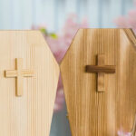 Casket • Natural Wood Finish – Cross Design, 25 × 17 × 11 inches; Polished Finish – Cross Design, 25 × 17 × 11 inches • Carving