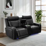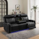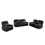 Pickup Only–Black Breathable Leather 3-Piece Living Room Functional Sofa Set