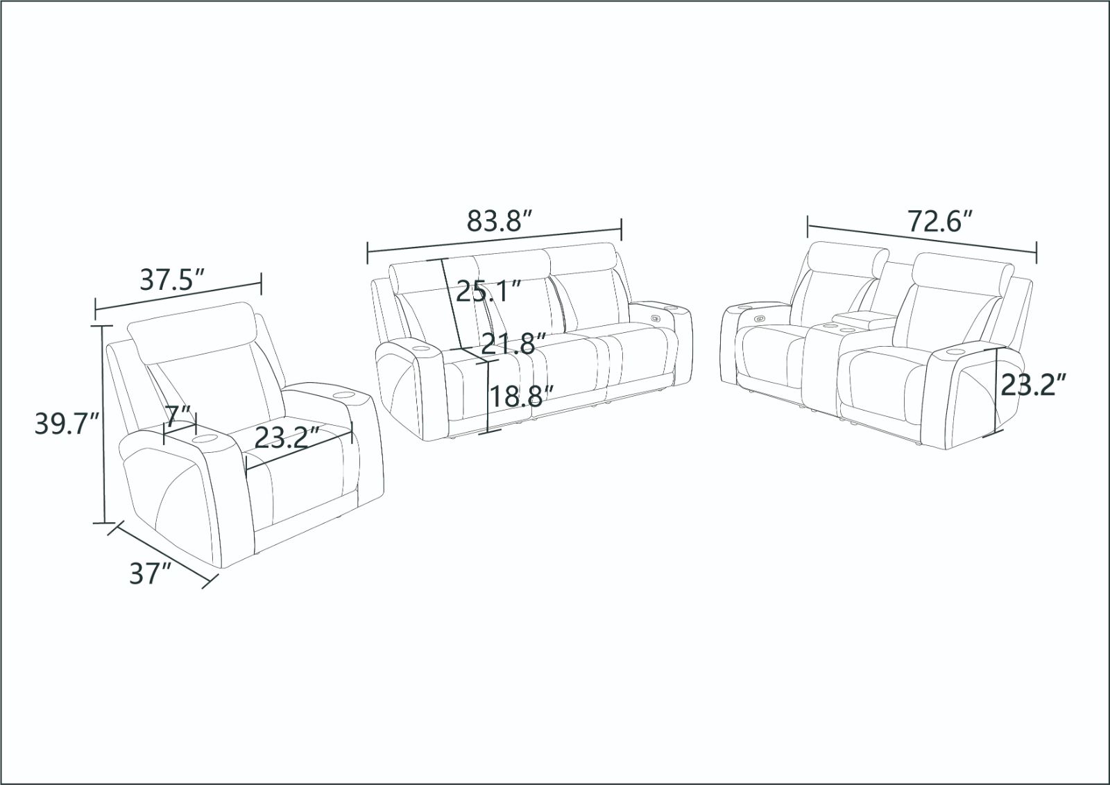 Pickup Only–Black Breathable Leather 3-Piece Living Room Functional Sofa Set