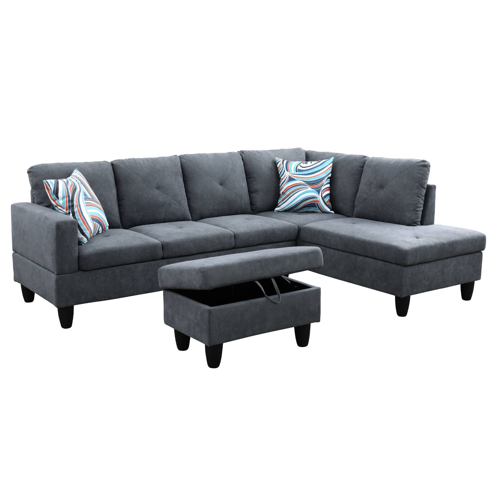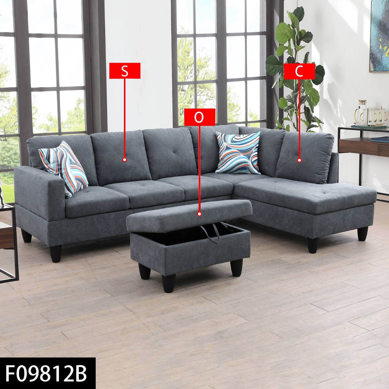 Pickup Only–Dark Grey Flannelette 3-Piece Living Room Sofa Set