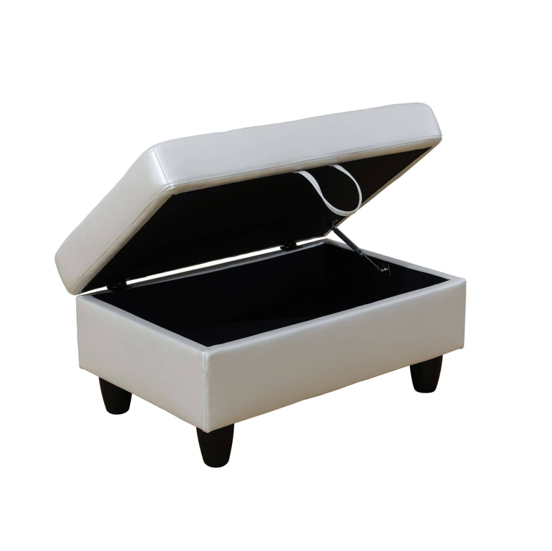Pickup Only–Silver Grey Semi PU Synthetic Leather Storage Ottoman