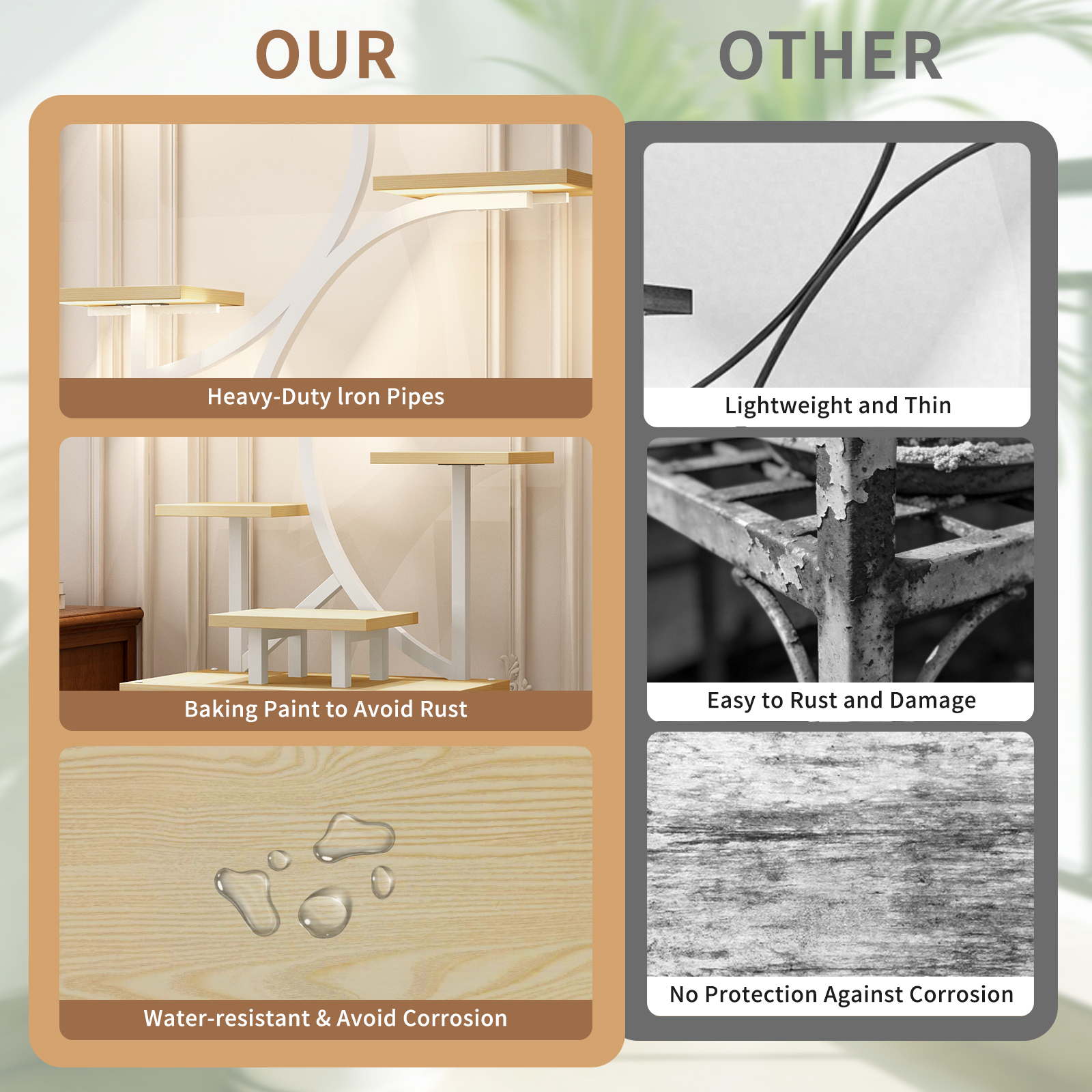 Plant Stand Indoor With Grow Lights – 62 Tall Plant Shelf, Lighted Corner Plant Stands For Indoor Growing, 8 Tiered Large Flower Holder, S-Shaped Decorative Rack For Living Room NATURAL COLOR