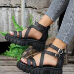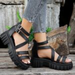 Platform All-match Hollowed-out Mid-heel Strappy Sandals