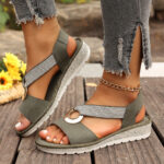 Be the first to review “Plus-size Fish-mouth Wedge Sandals With A Jute Sole And Elastic Strap”