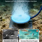 • 550W Powerful Motor: This lake aerator features a 3/4 HP oil-free air compressor delivering up to 5.2 CFM at 1665 RPM. Our aerator for pond is energy-efficient and low-maintenance, producing clean air without oil contamination