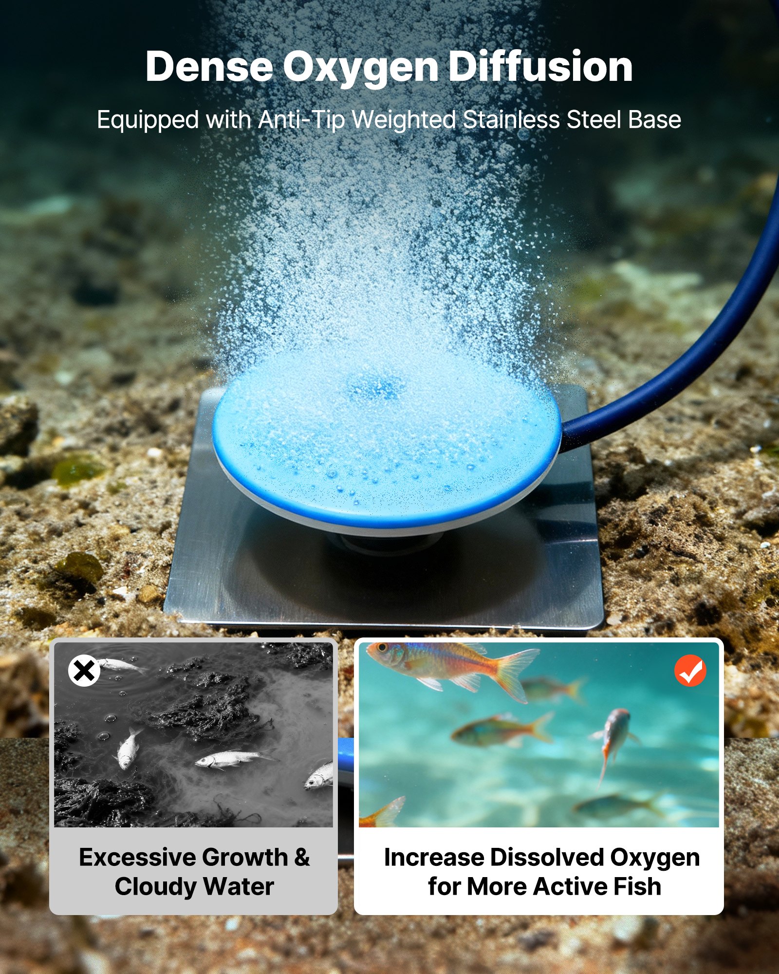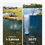 • Aeration for 3 Acre Ponds: This pond aerator kit is suitable for 1- 3 acres and 50 ft deep ponds. This high-efficiency underwater aeration system helps prevent fish kill from low oxygen, reduces water plants, and cuts down on sludge buildup—restoring balance to your pond or farm lake