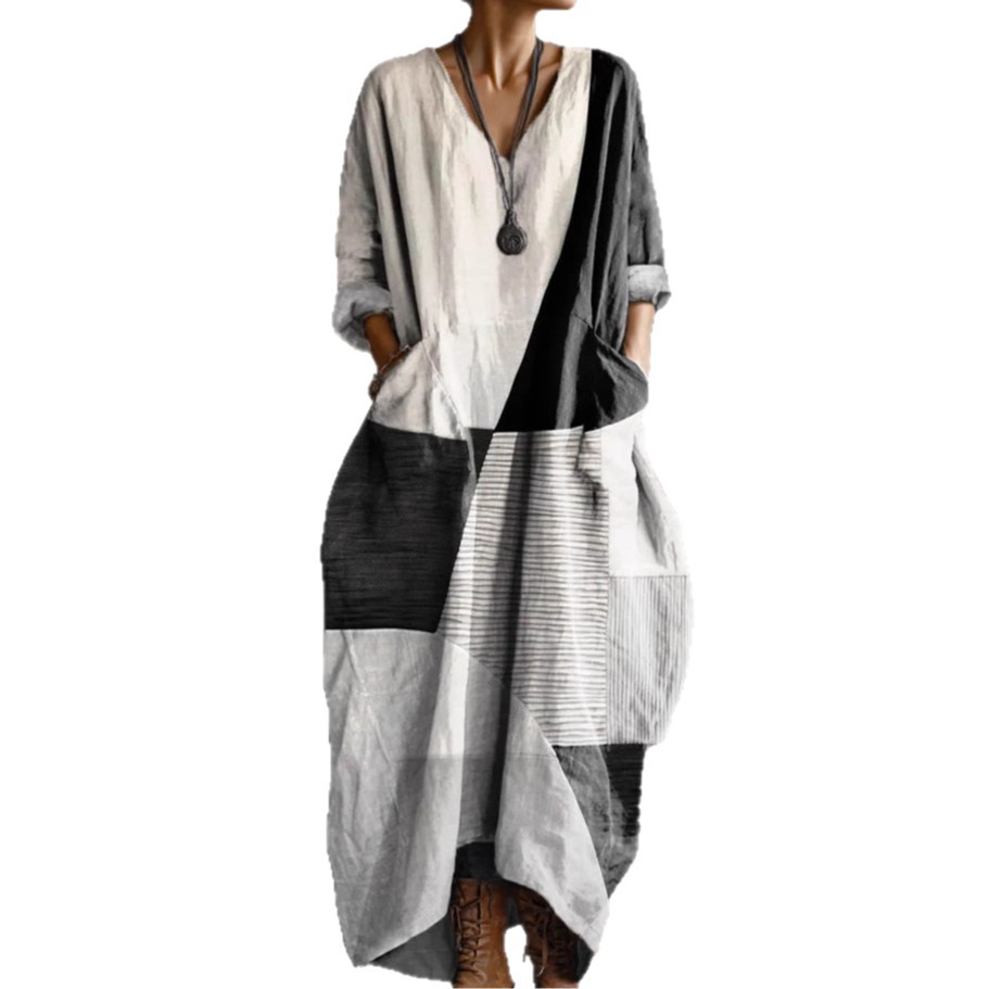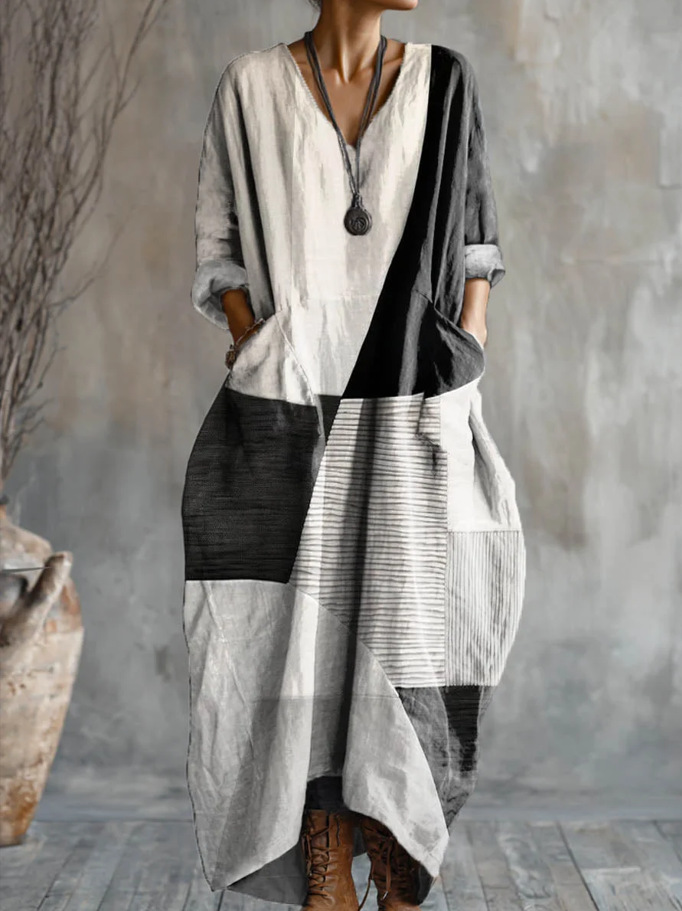 Printed Art Pocket V-Neck Long-Sleeve Dress is designed for style, comfort, and everyday use.