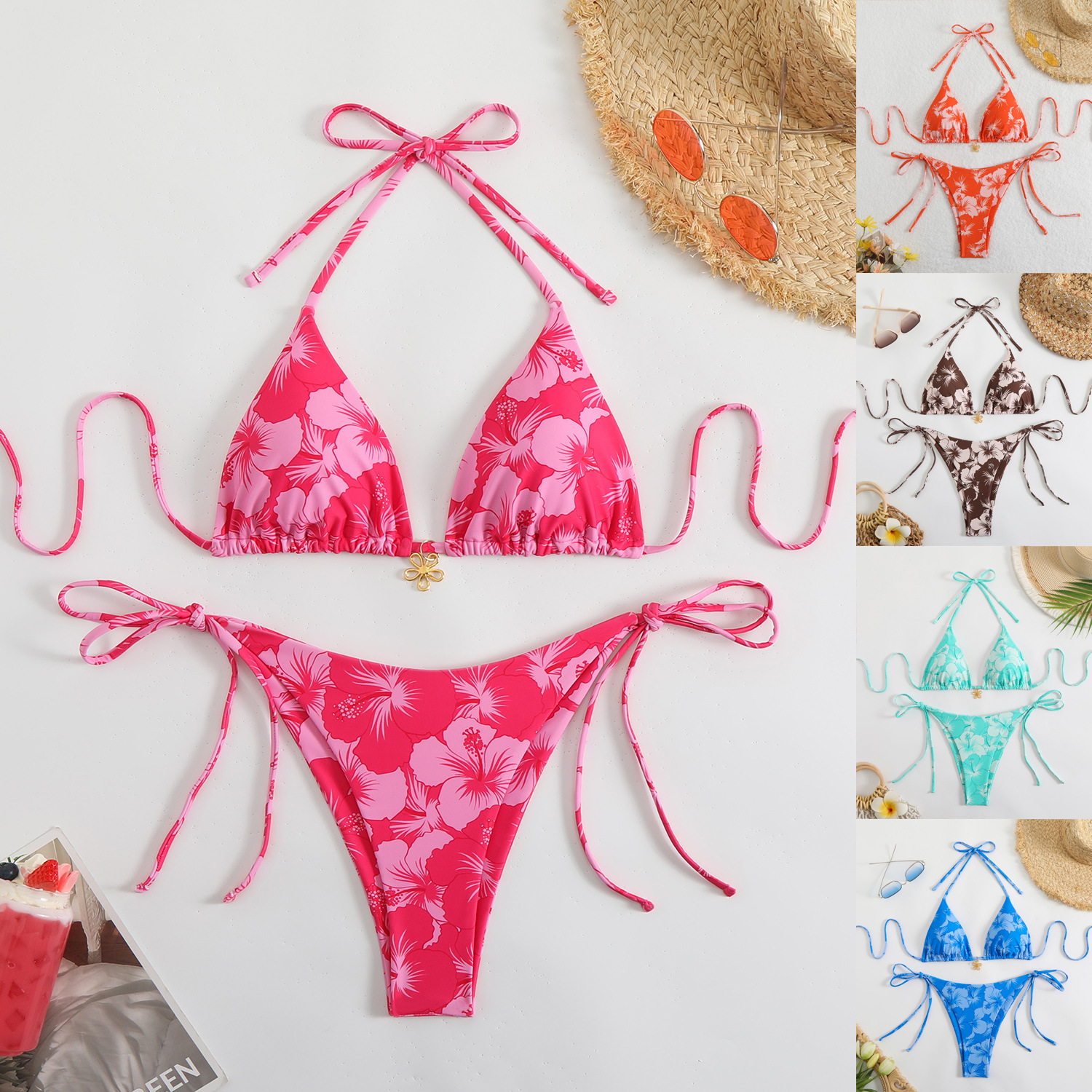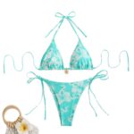 Printed Tight-fitting Lace-up Open-back Two-piece Swimsuit