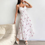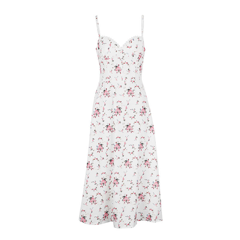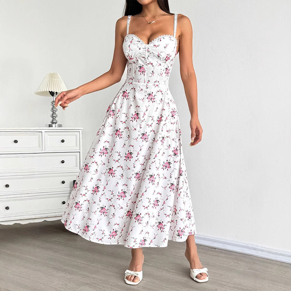Printed Tube-top Slip Dress With Back-tie Waistband For A Slimming Effect