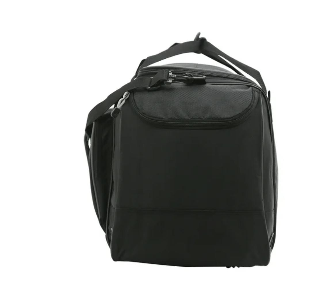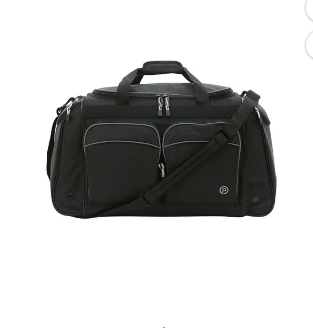 The Protégé 28” Sports Duffel Bag is the perfect companion for the outdoors. Made of strong tear- and water-resistant polyester material, the 28” duffel has a durable construction, two large front pockets, roomy full-lined side pockets that make them ideal as wet/shoe pockets, and a spacious main compartment. The durable web handles make it a breeze to tote or carry it with a detachable padded shoulder strap. Interior bottom board folds in half for easy storage. Measures at 28” x 13.5” x 14” and 2.8 lbs., this duffel has excellent value and is available in-stores and online in black and purple. Packing cube bag included. Meets airline check-in requirements.