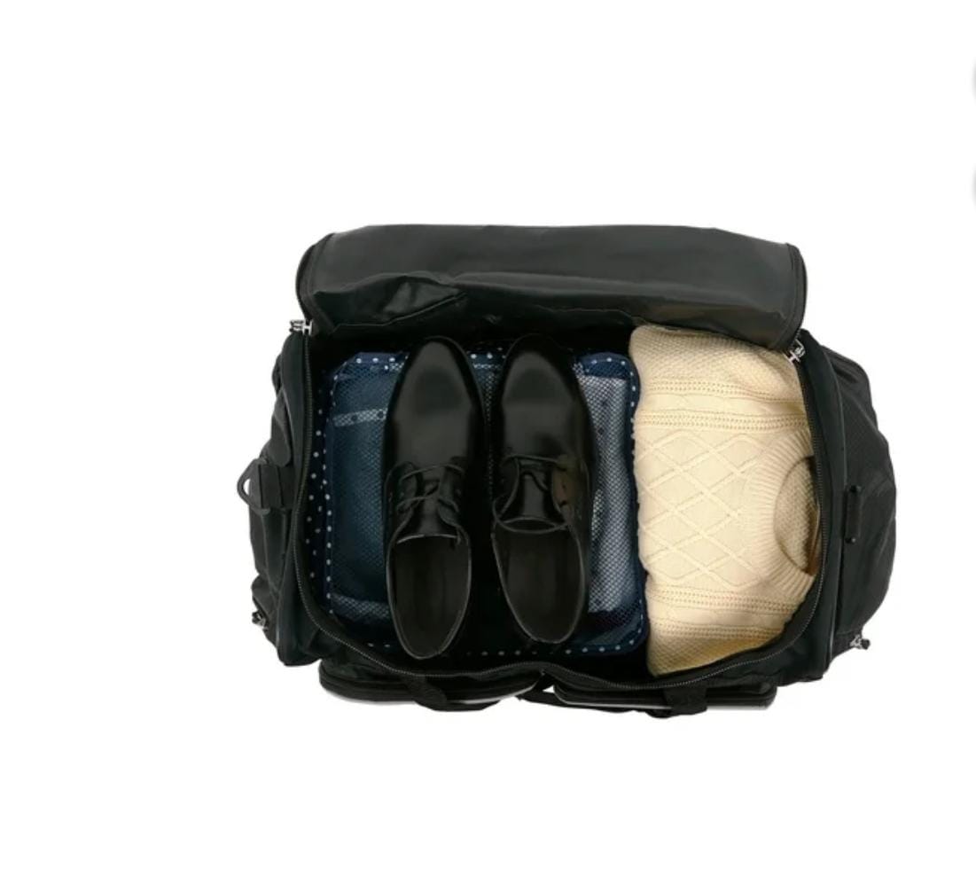 Two side wet/shoe pockets and two easy-access front accessory pockets