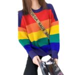 Rainbow Sweater Women’s Loose-Fit Outerwear Korean Style