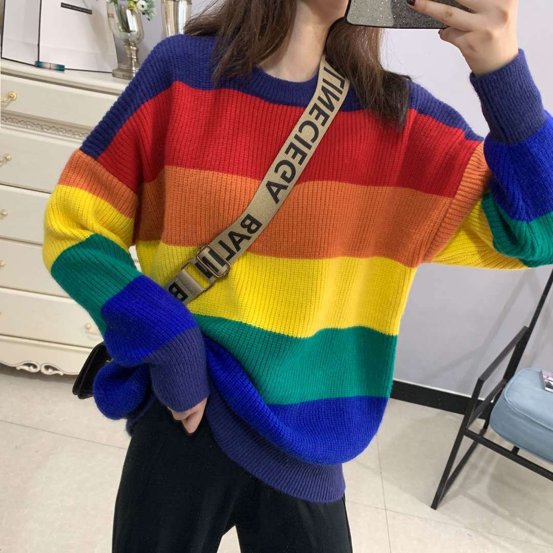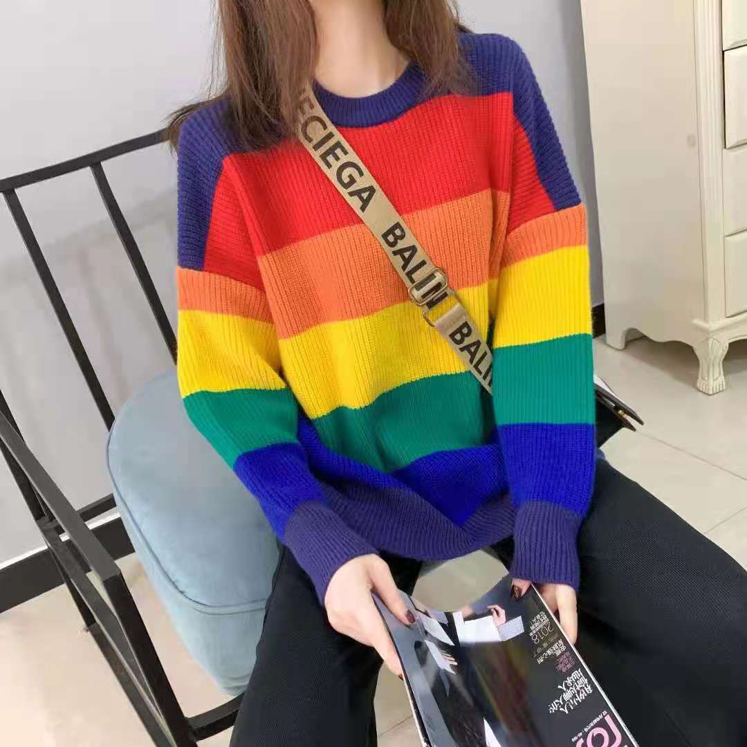 Rainbow Sweater Women’s Loose-Fit Outerwear Korean Style