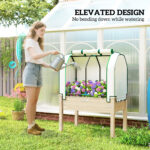 Raised Garden Bed with PE Greenhouse Cover Outdoor Planter Box for Herbs and Vegetables, 35 x 22 x 47 inch, Natural