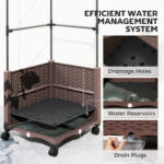 Raised Garden Bed with Trellis, Tomato Cage with Lockable Wheels, Self Watering Planter Box with Drainage Holes, Brown