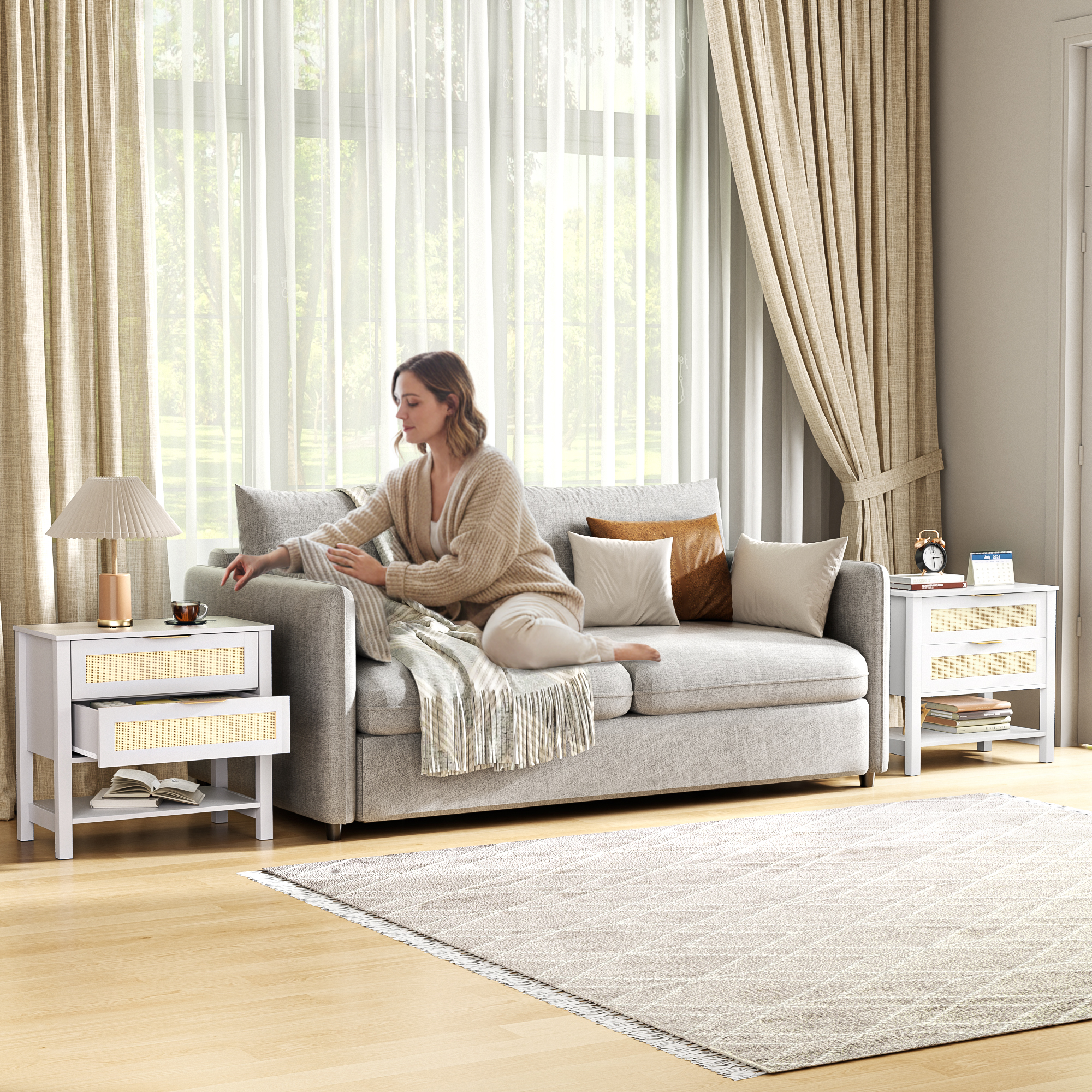 Rattan Nightstand With 2 Drawers And Storage Shelf Boho Bedside Narrow Side Table For Bedroom is designed for style, comfort, and everyday use.