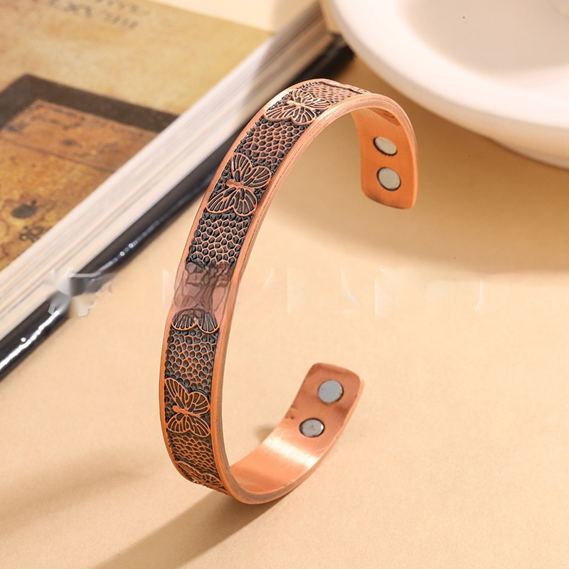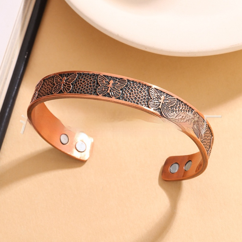 Red Copper Magnetic Vintage Bracelet With Butterfly Design Widened Magnetic Clasp