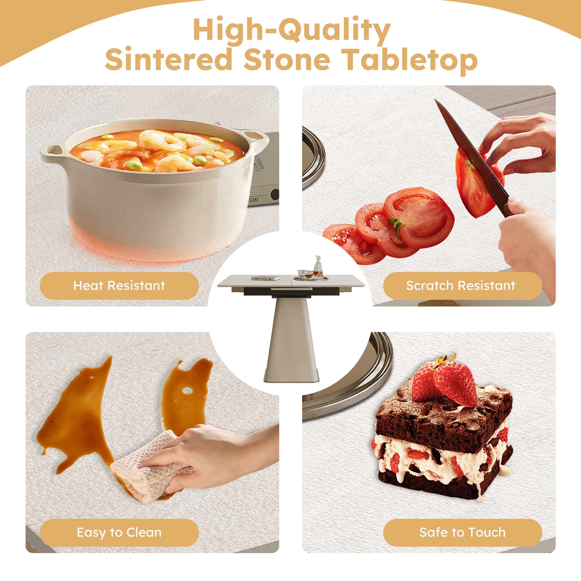 Retractable Rock Slab Folding Dining Table Modern Square Expandable Table With Leather-Wrapped Stainless Steel Base Dual-Purpose Space Saving Kitchen Table For Small Apartments is designed for style, comfort, and everyday use.