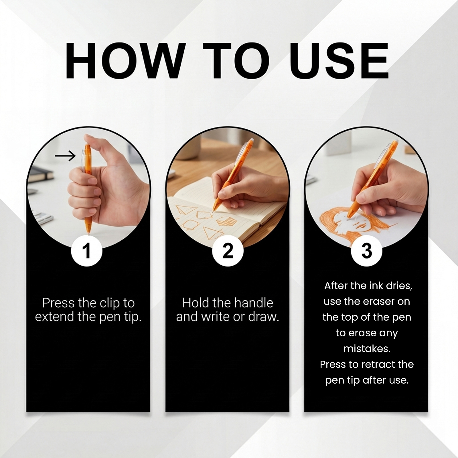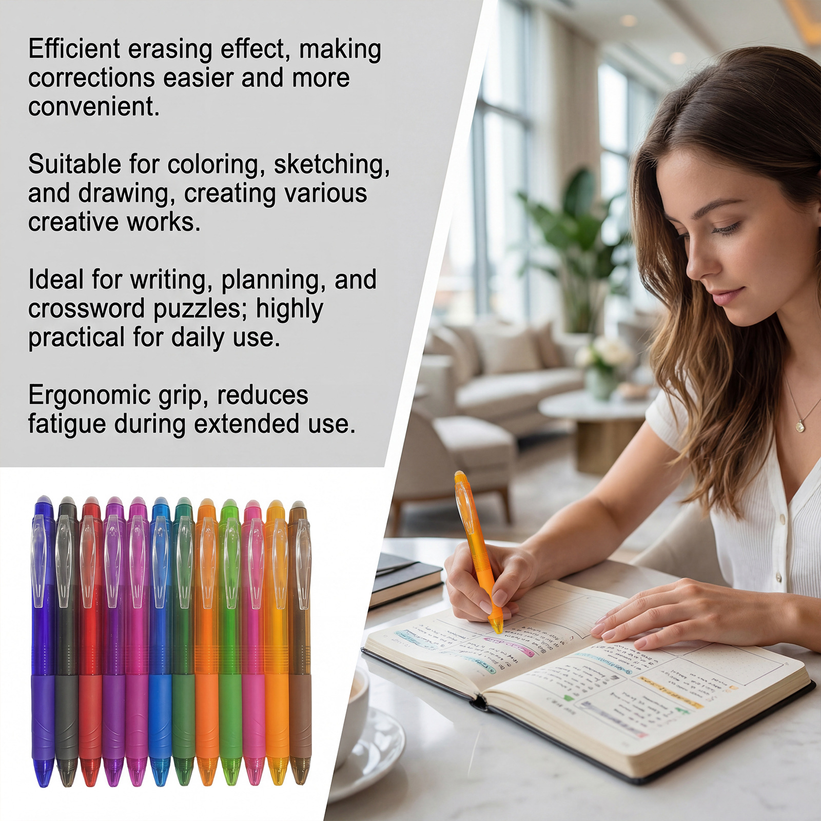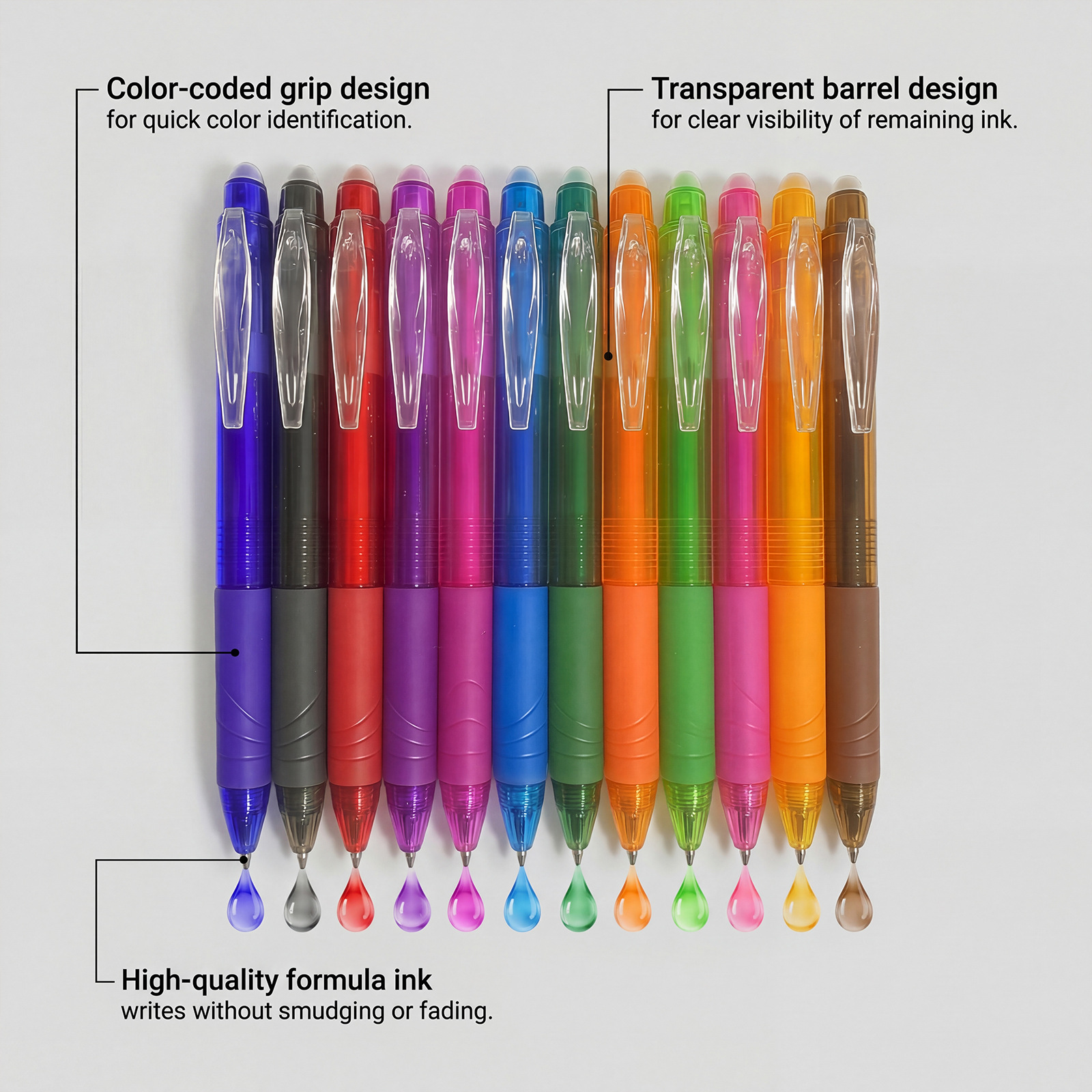 Retractable, Smooth-writing, Color-erasable Gel Pen is designed for style, comfort, and everyday use.