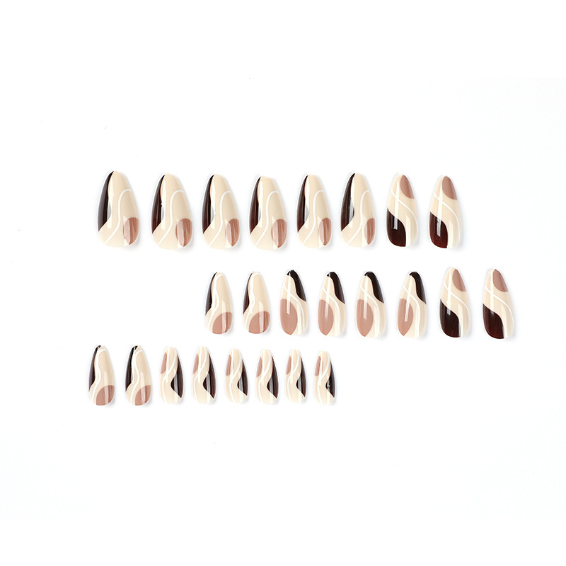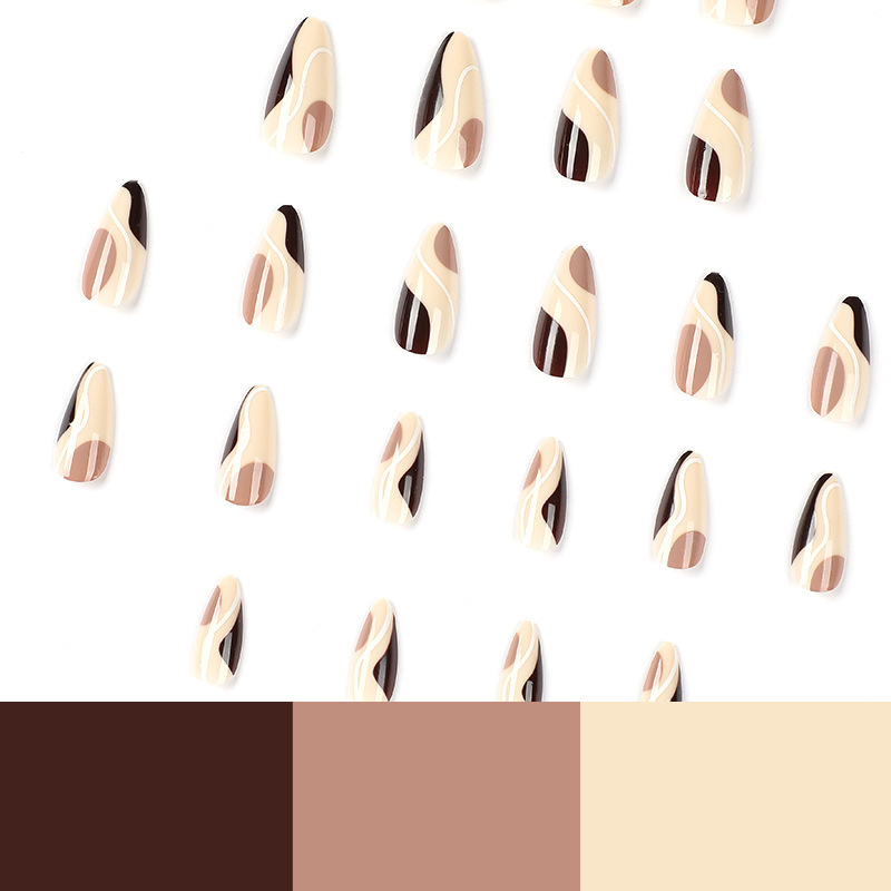 Retro Brown And White Nail Art Wearable Nails