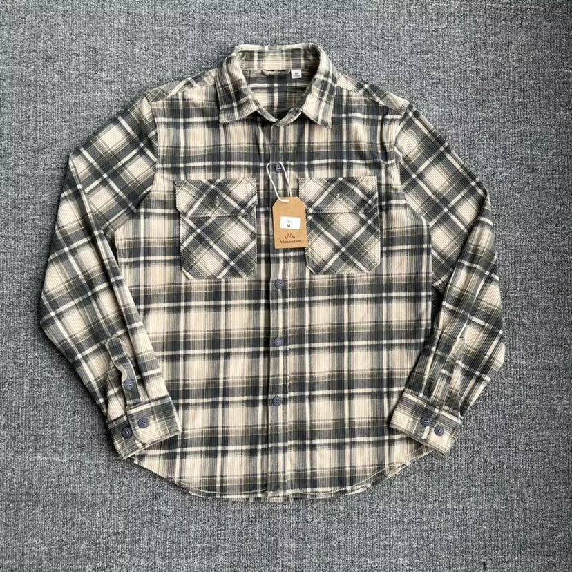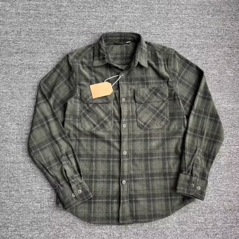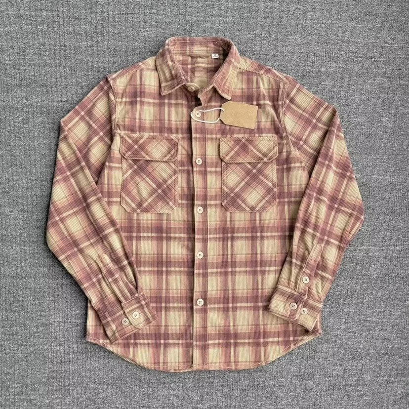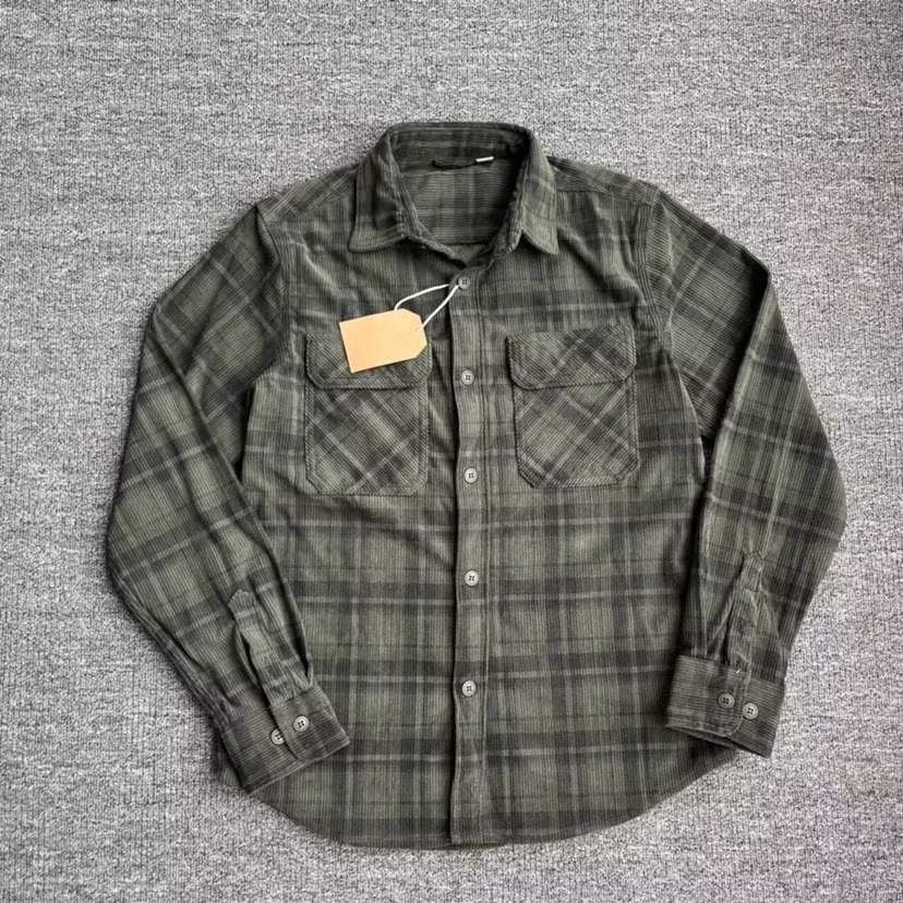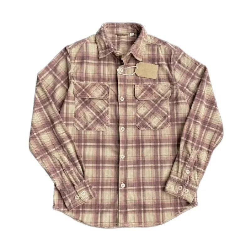 Retro Casual Slim-Fit Striped Corduroy Plaid Shirt