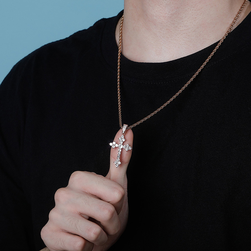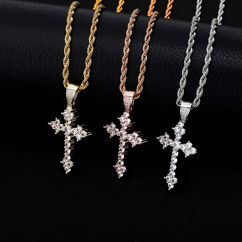 Retro Cross Pendant With Full Zirconia, Simple Religious Necklace For European And American Styles