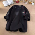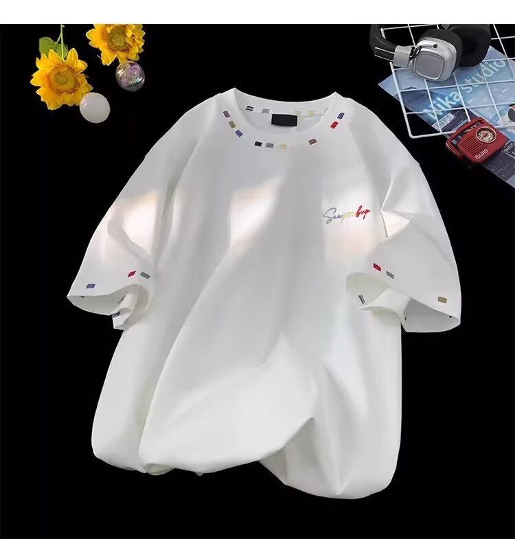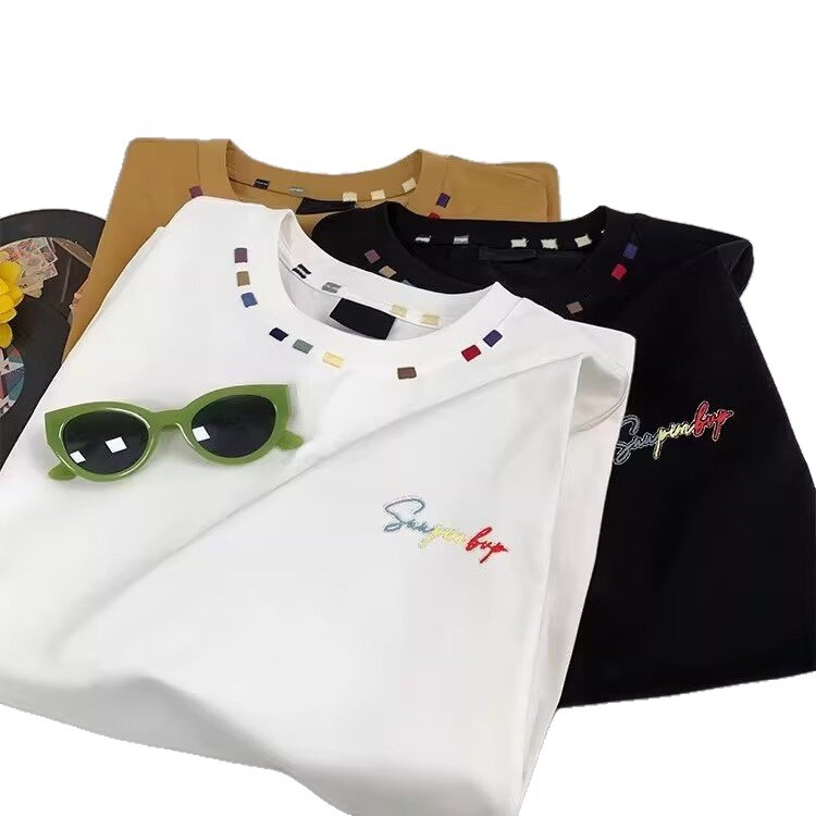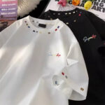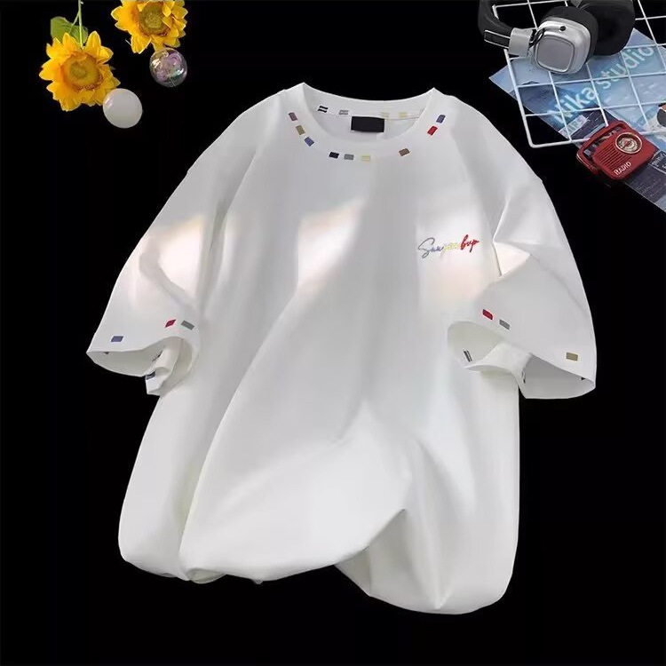 Retro High-Street Embroidered Loose-Fit Half-Sleeve Top