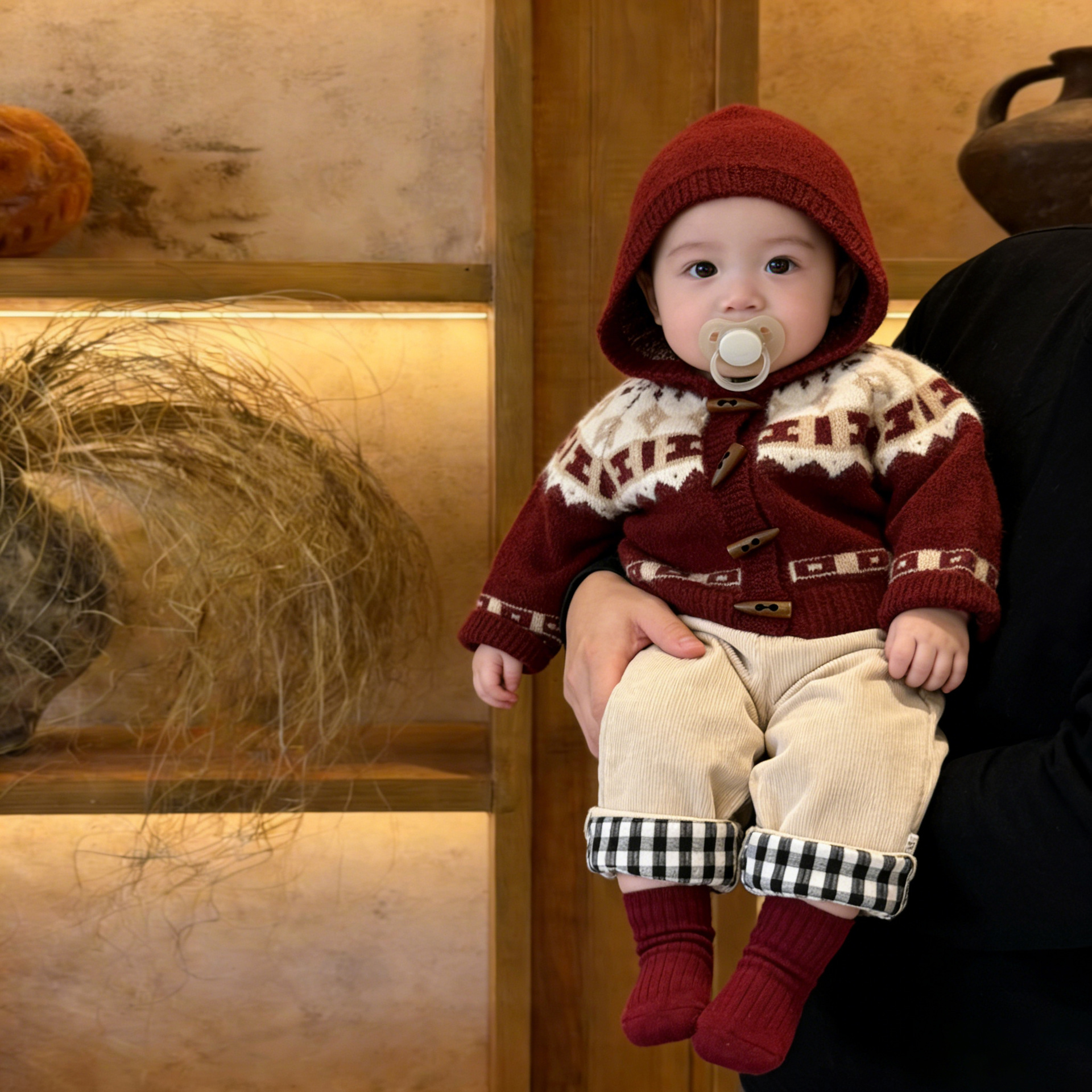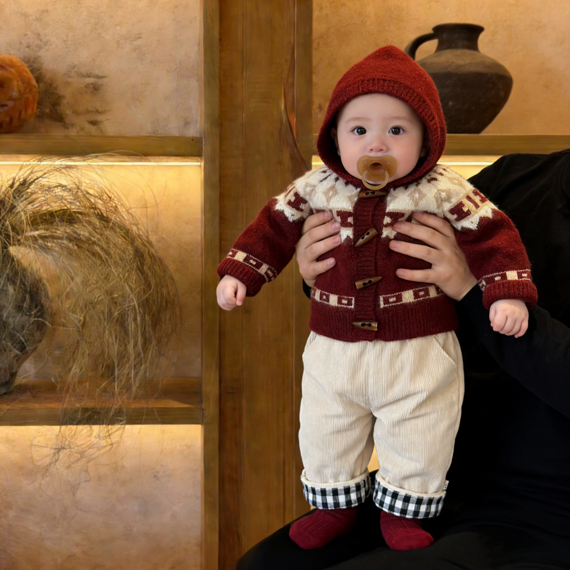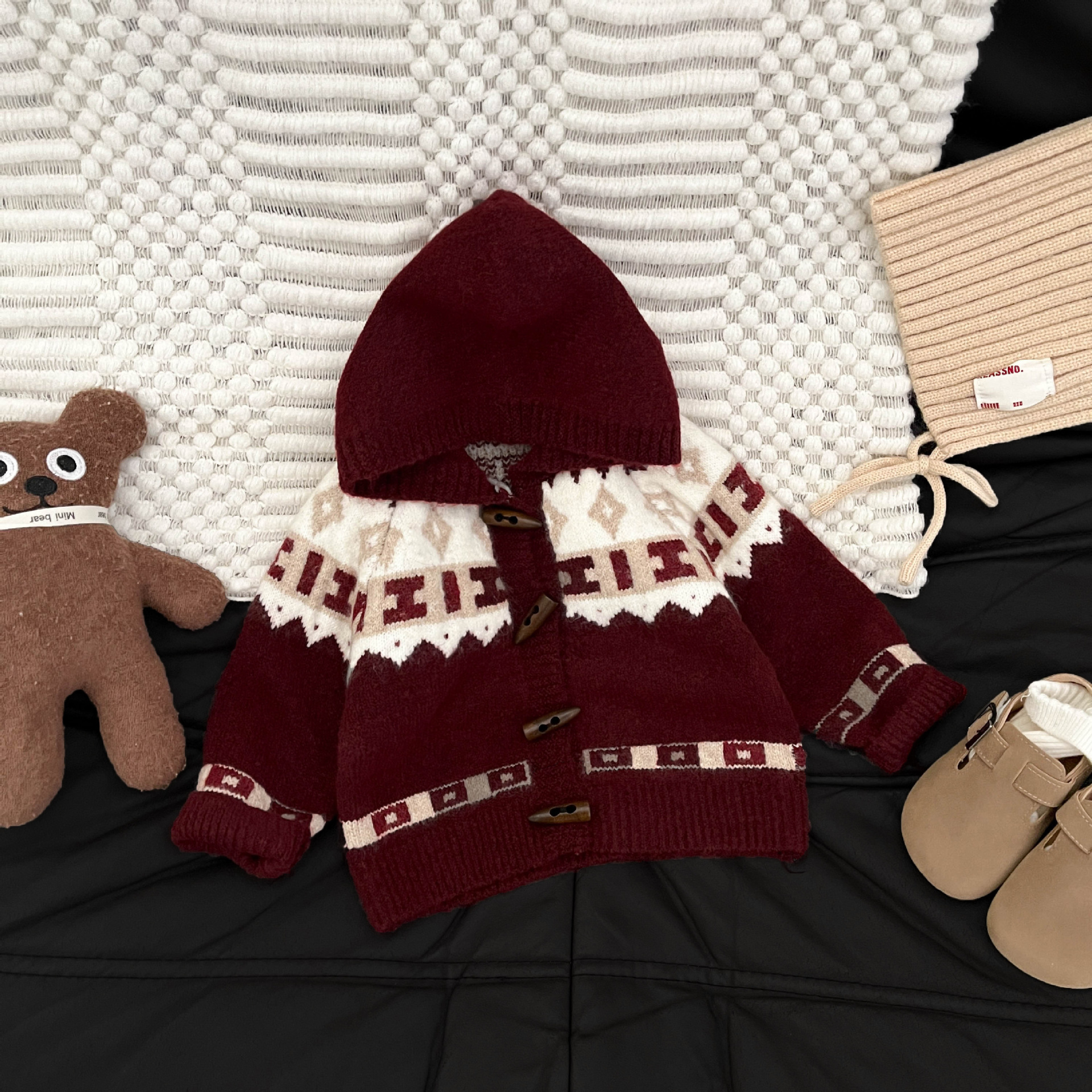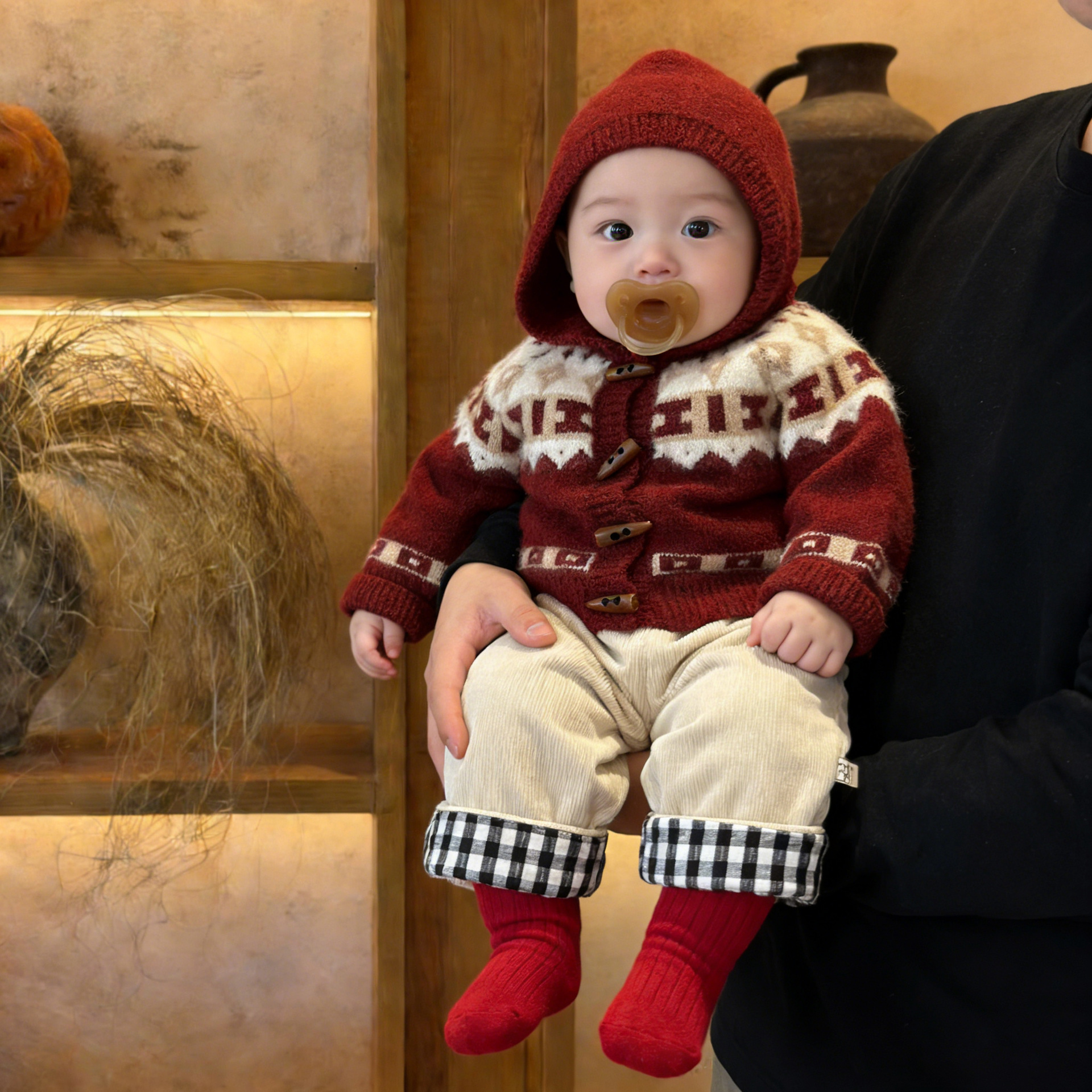 Retro Red Thickened Hooded Knitted Cardigan
