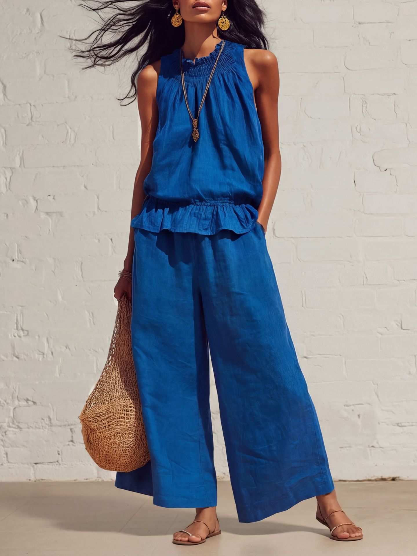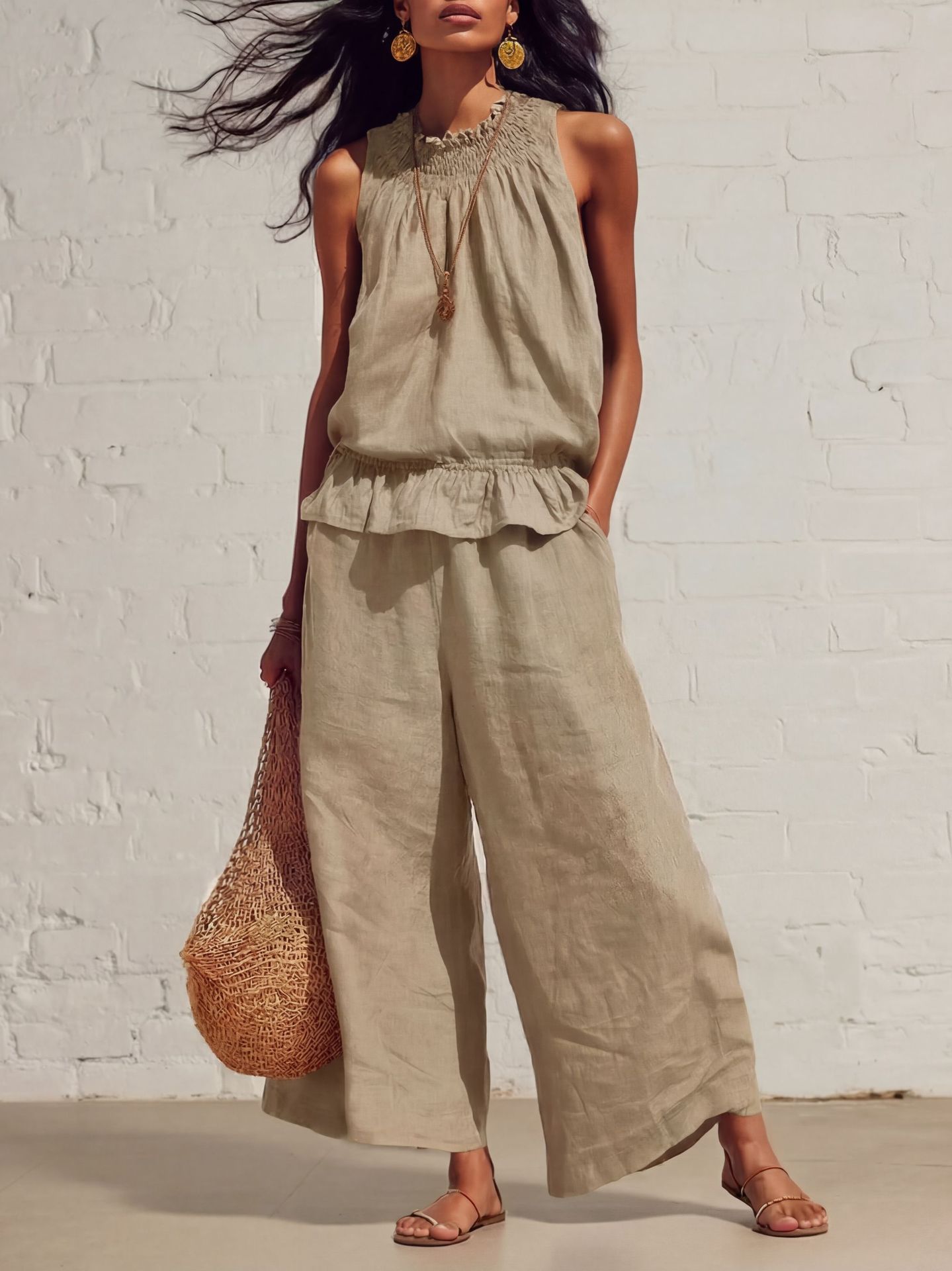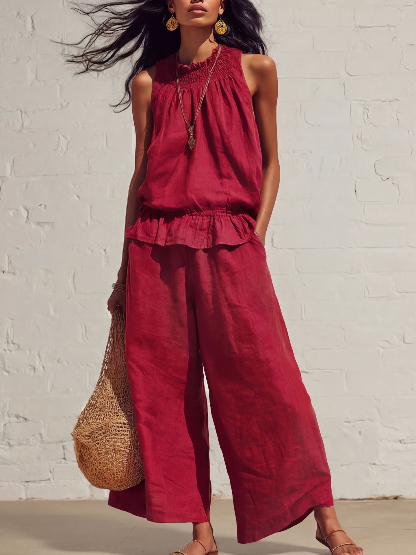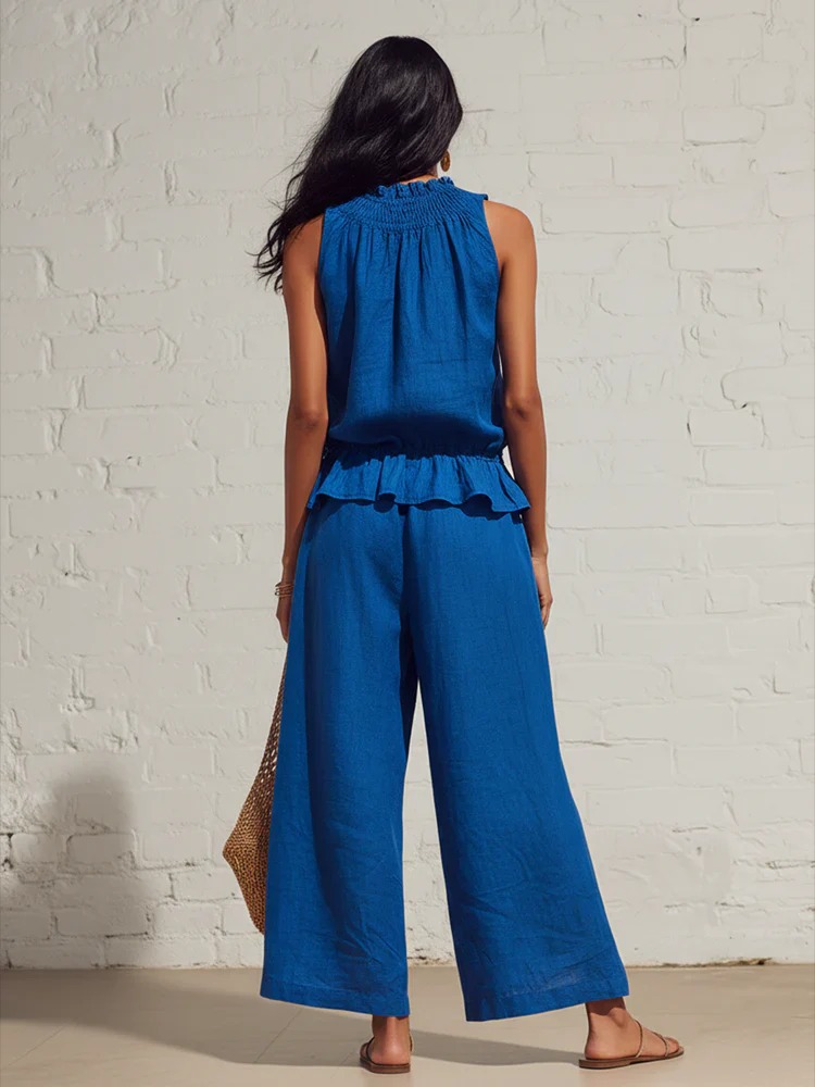 Retro Ruffled Cotton-Linen Two-Piece Set is designed for style, comfort, and everyday use.