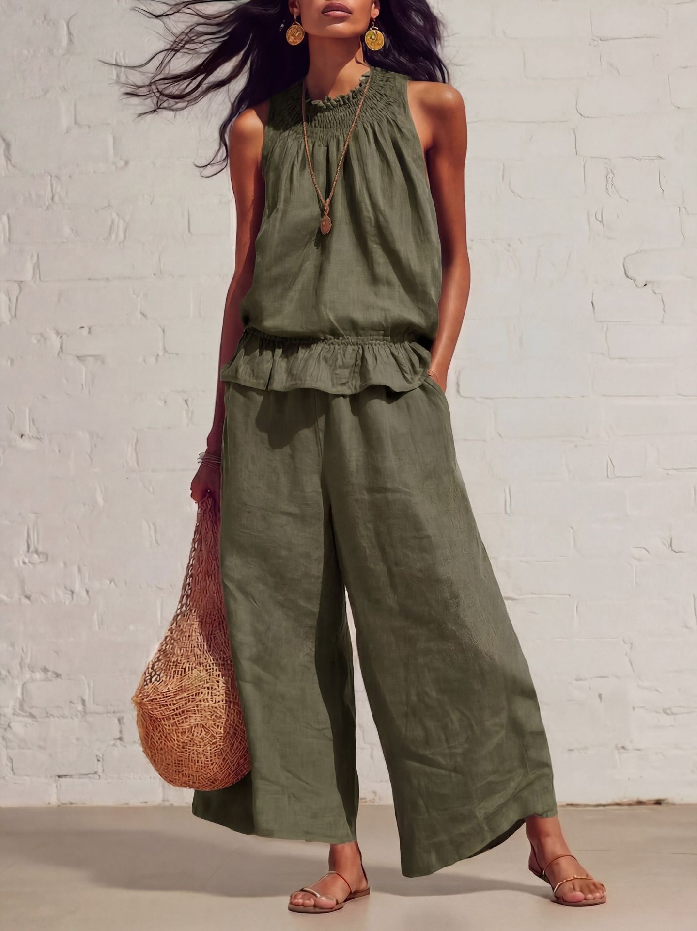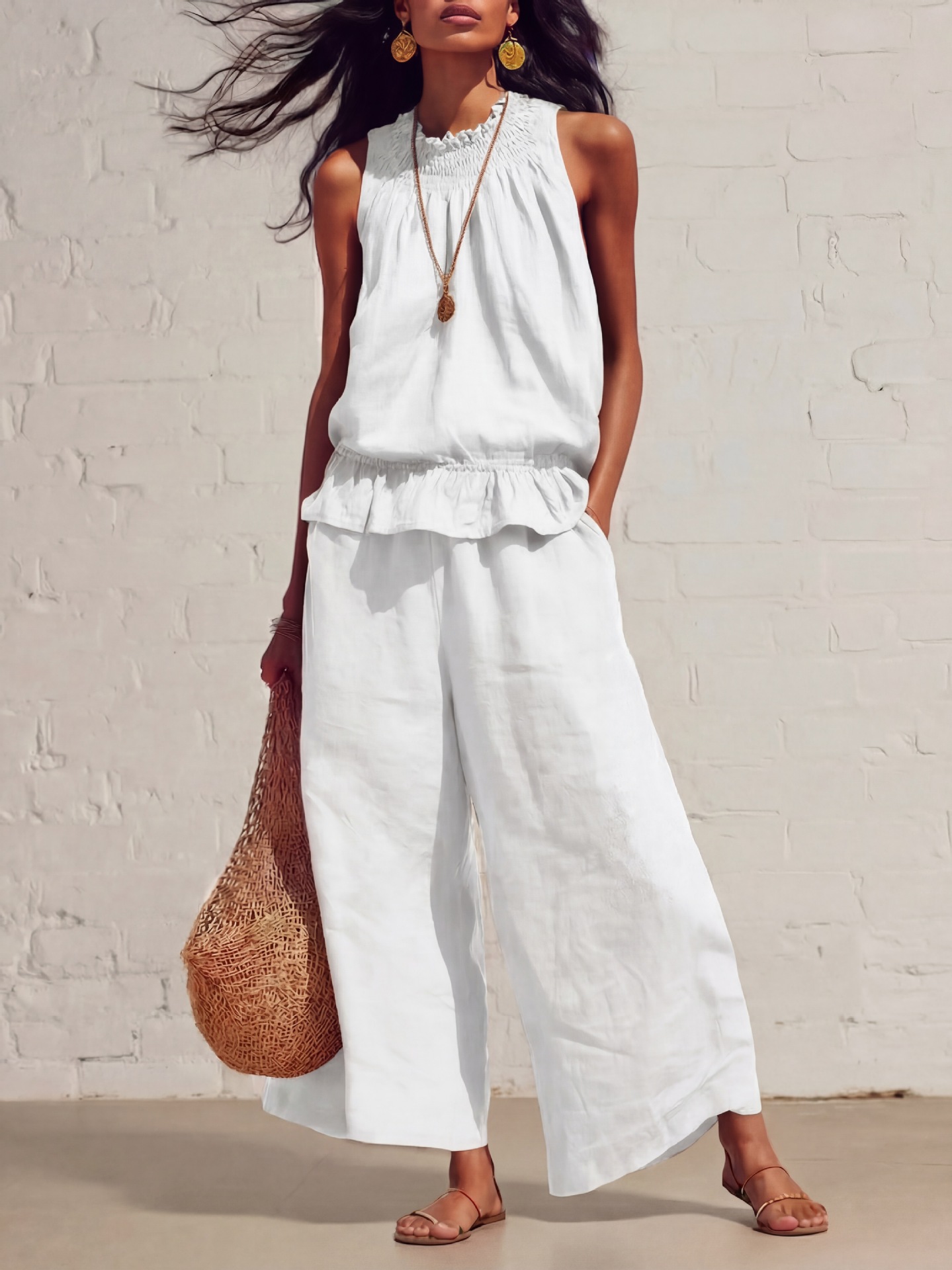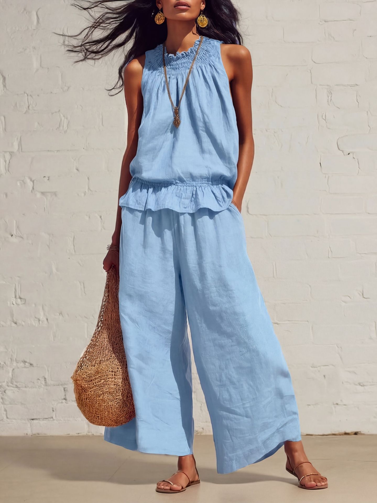 Retro Ruffled Cotton-Linen Two-Piece Set is designed for style, comfort, and everyday use.