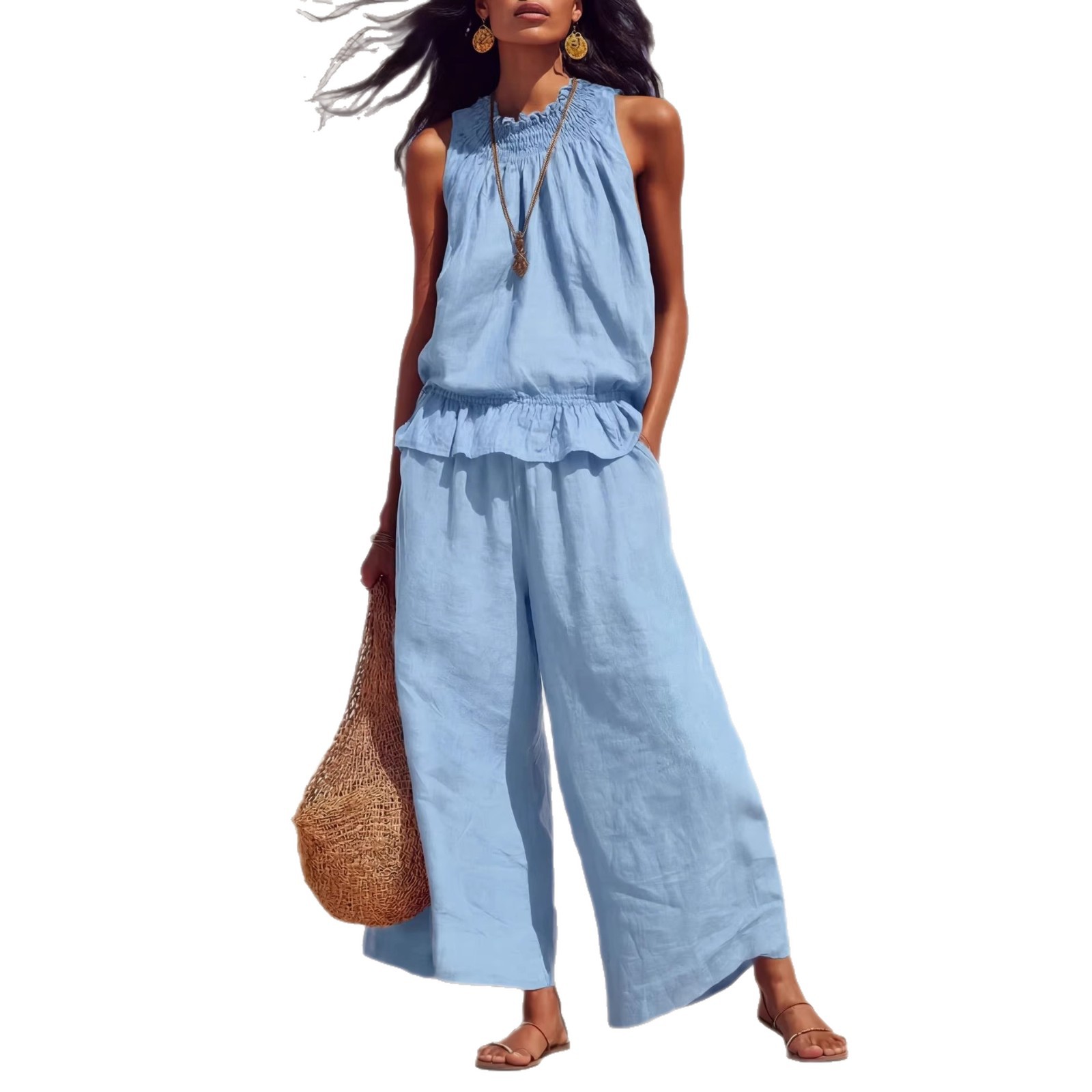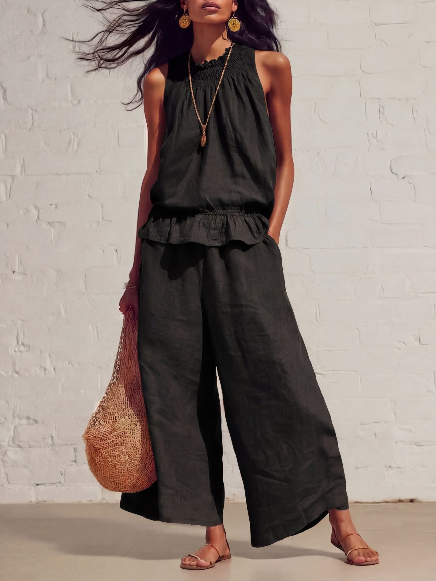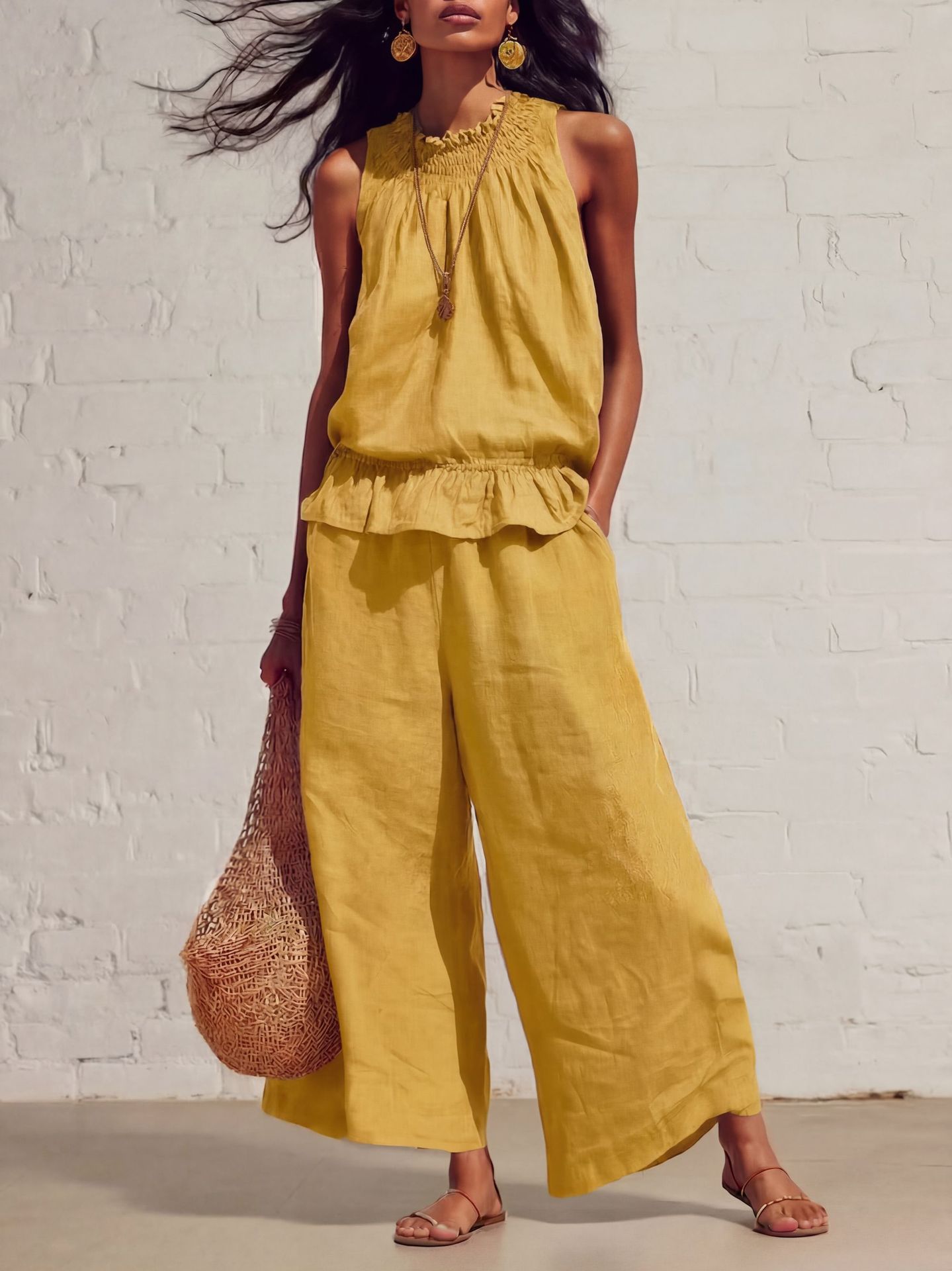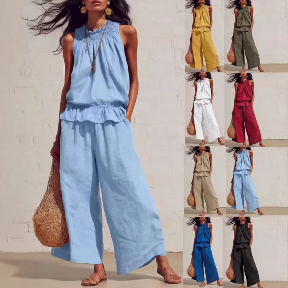 Retro Ruffled Cotton-Linen Two-Piece Set is designed for style, comfort, and everyday use.