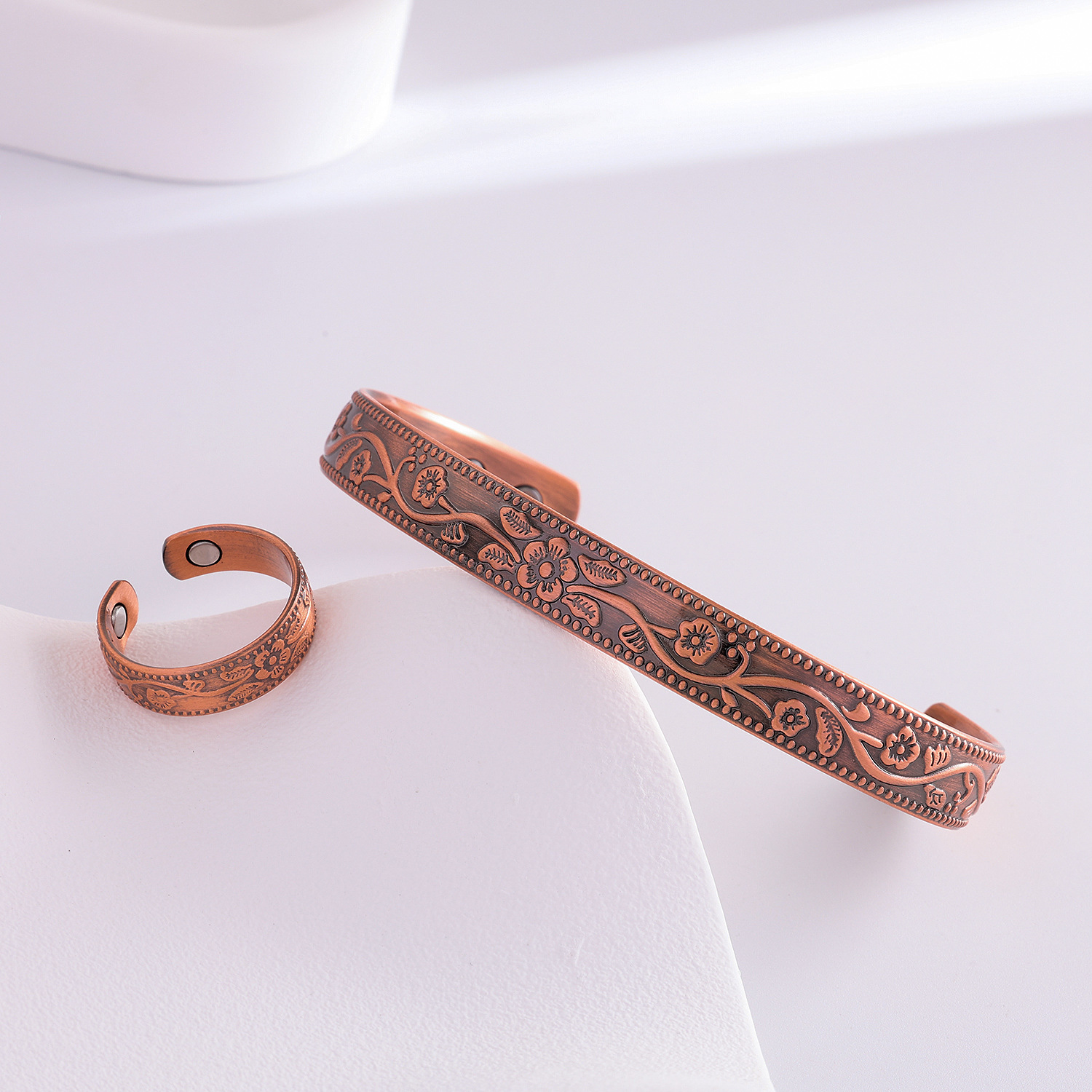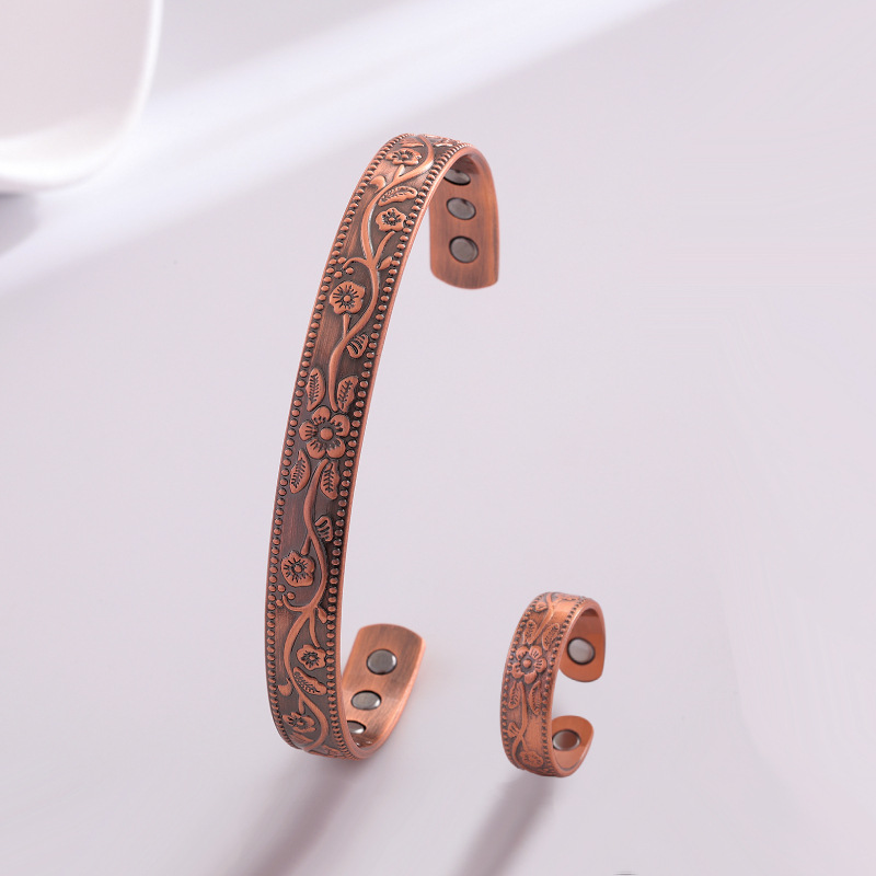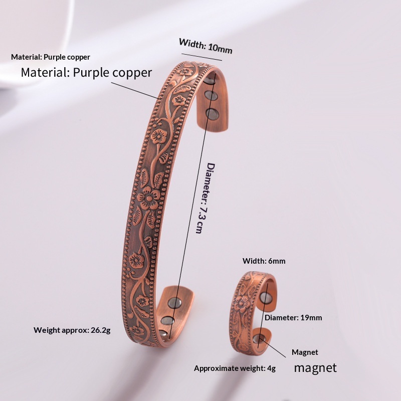 Vintage • Plum blossom motif, retro minimalist design, magnetic energy structure • Bracelet, Ring