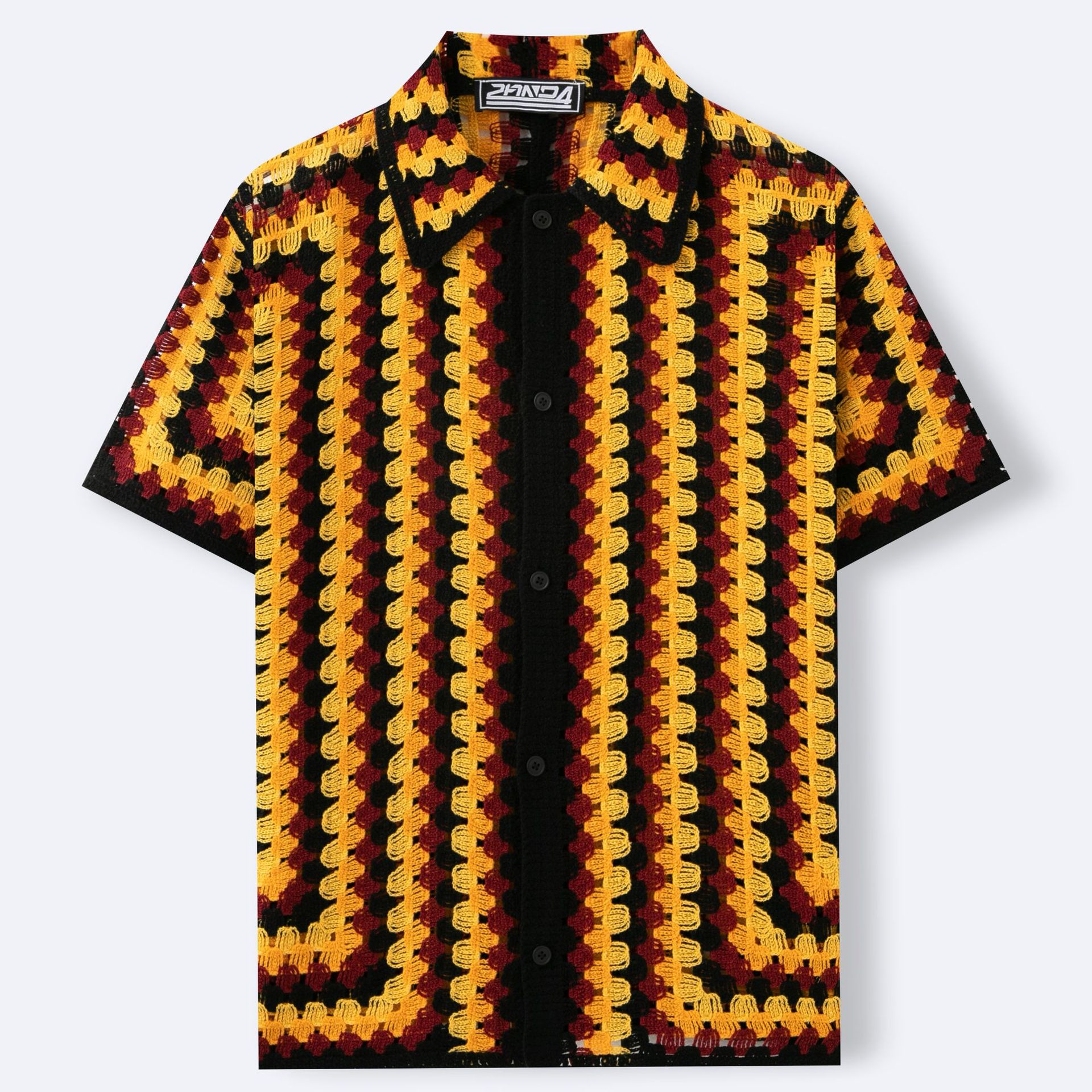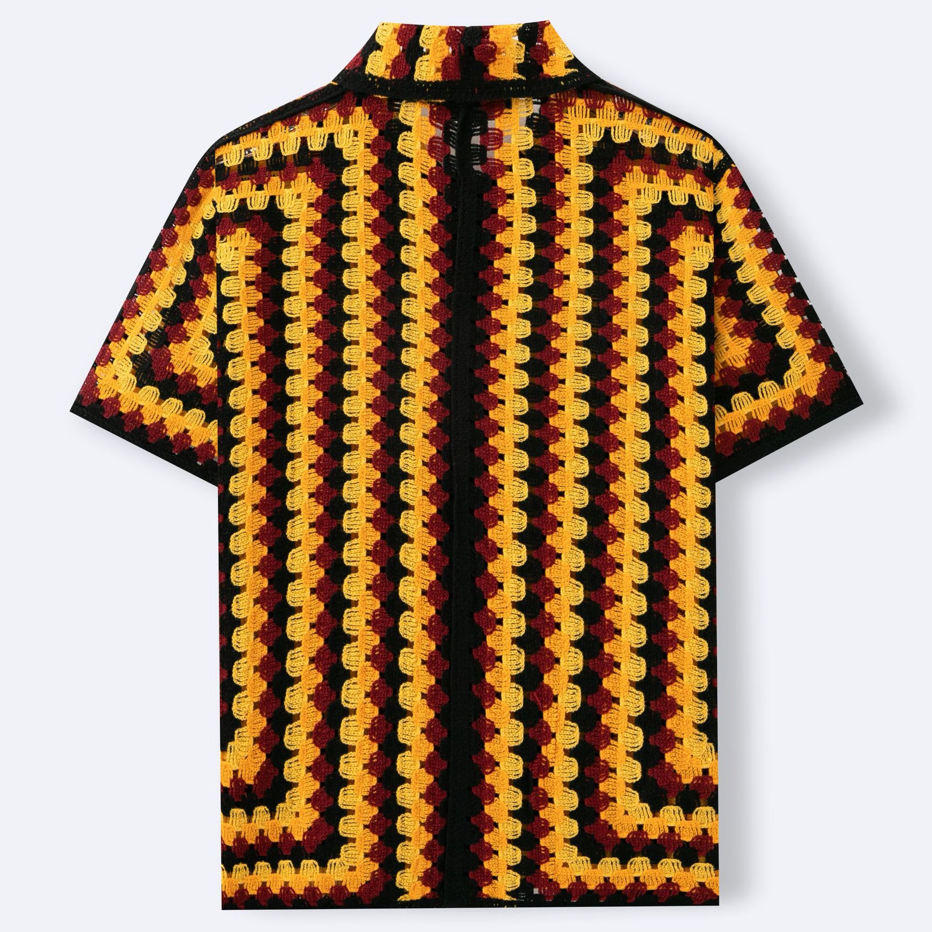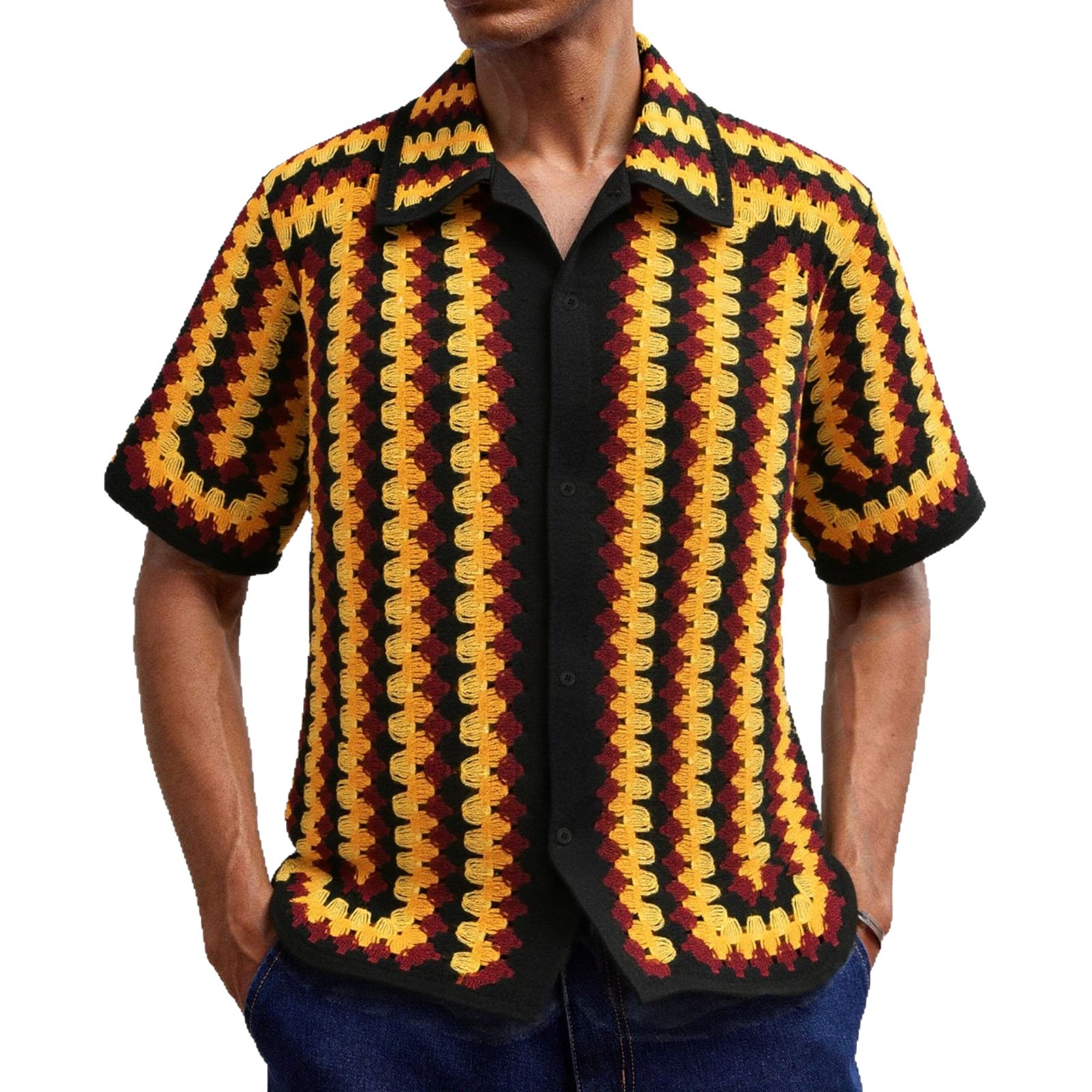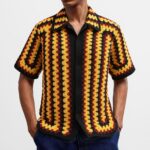 Retro Striped Crochet-Knit Mens Shirt