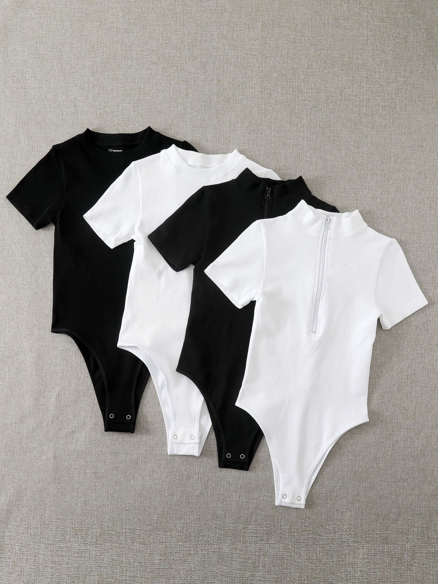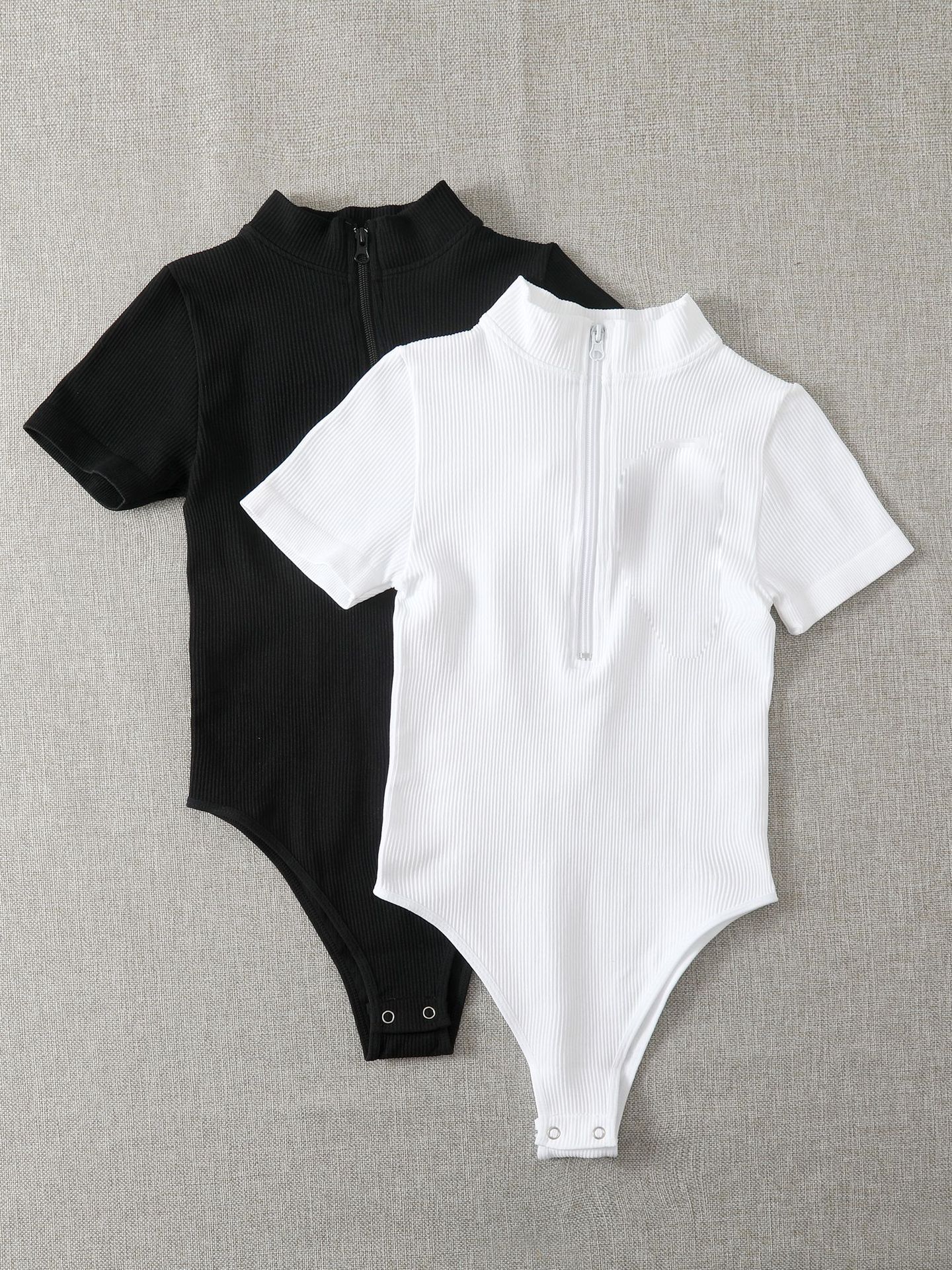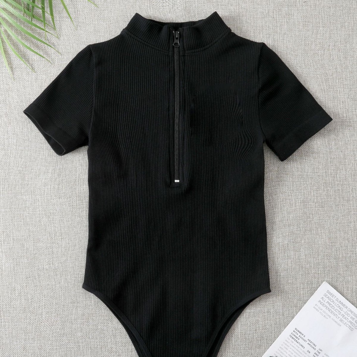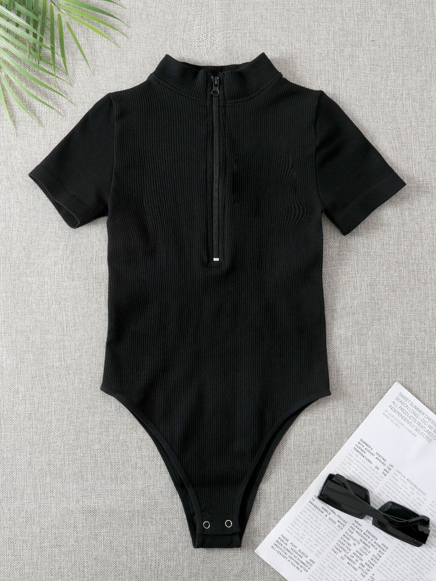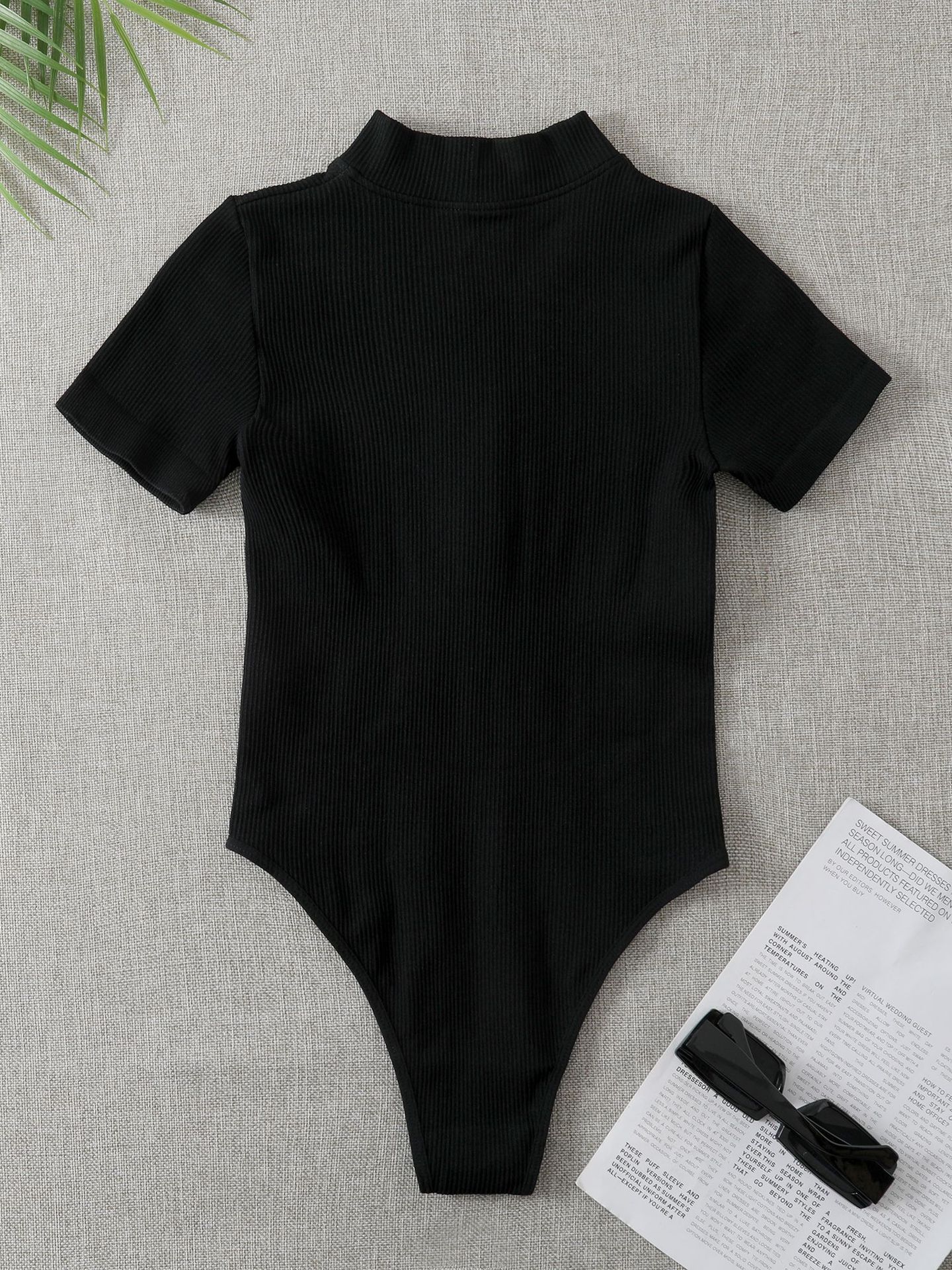 Ribbed Short-sleeve Tight-fitting High-stretch Turtleneck Zip-up Bodysuit is designed for style, comfort, and everyday use.