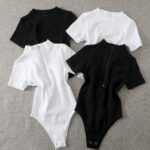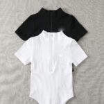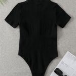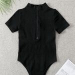 Be the first to review “Ribbed Short-sleeve Tight-fitting High-stretch Turtleneck Zip-up Bodysuit”