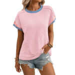 Be the first to review “Round-neck Outer-seam Twisted-stripe Short-sleeve Loose-fit Color-block T-shirt”