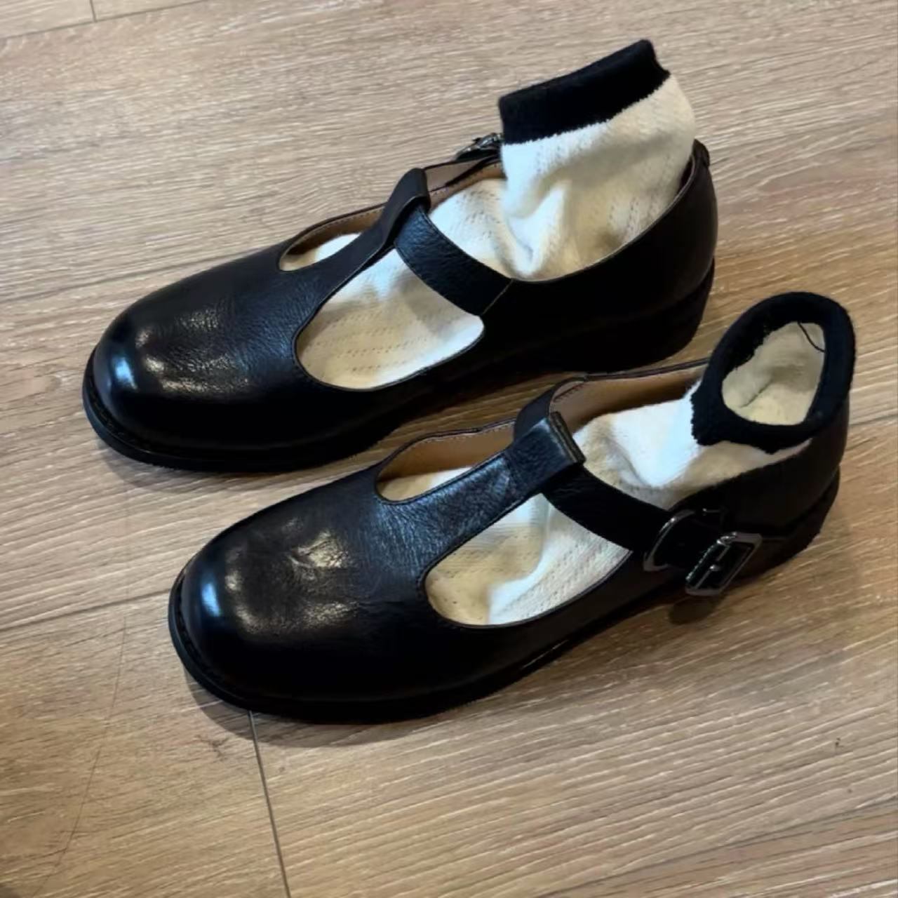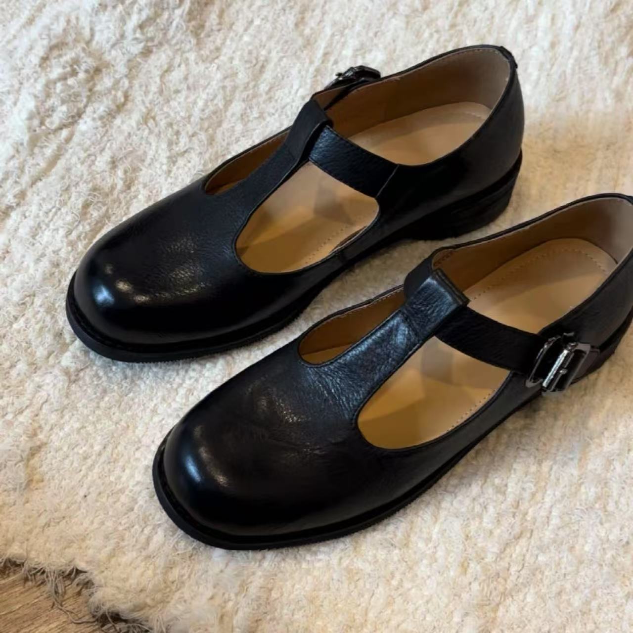 Be the first to review “Round-toe Mid-heel T-strap Chunky-heeled Mary Jane Leather Shoes”