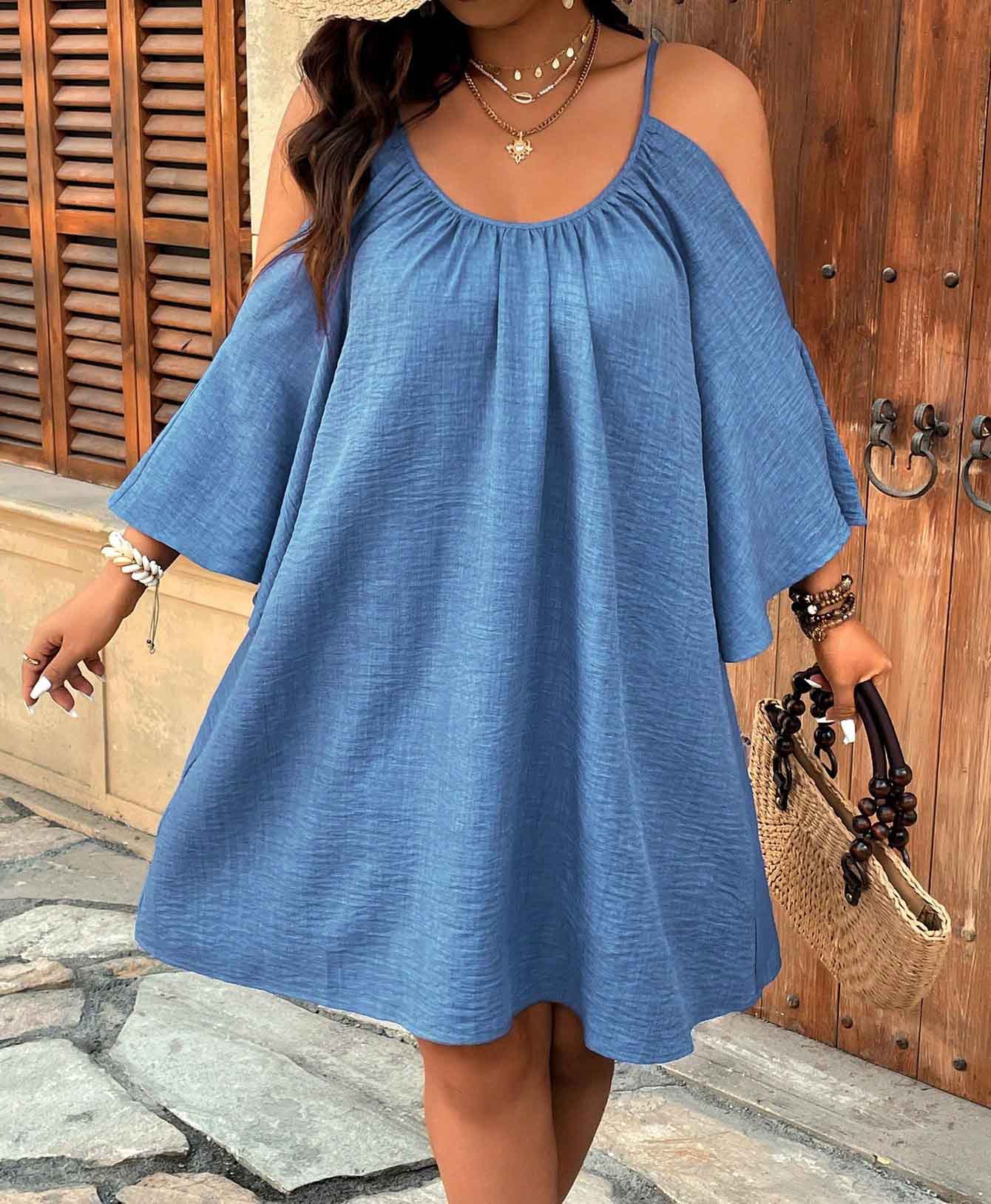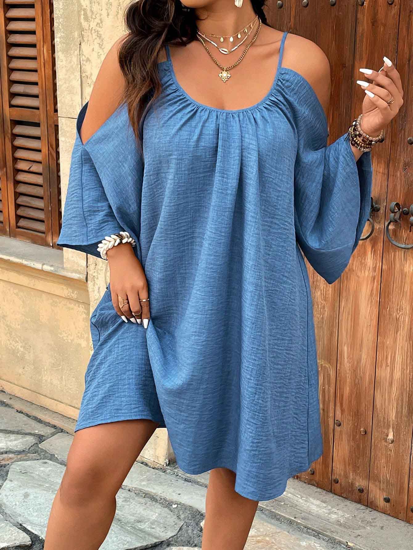 Ruched Off-Shoulder And Backless Design Womens Fashionable Plus-Size Dress is designed for style, comfort, and everyday use.