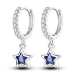 S925 Sterling Silver Blue Heart Pentagram For Women Fashionable Light Luxury Blue Zircon Earrings