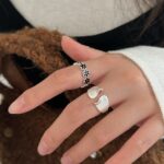 S925 Sterling Silver Niche Black Flower Ring For Women, Cool Tone Frosted Irregular Design, Delicate & Versatile Minimalist Index Finger Ring is designed for style, comfort, and everyday use.