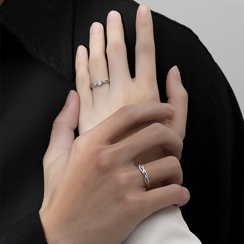 S999 Pure Silver Bind Your Love Couple Rings, Niche Design, Premium Light Luxury Pair Rings, Valentine’s Day Gift