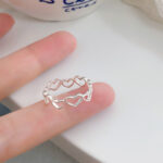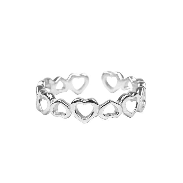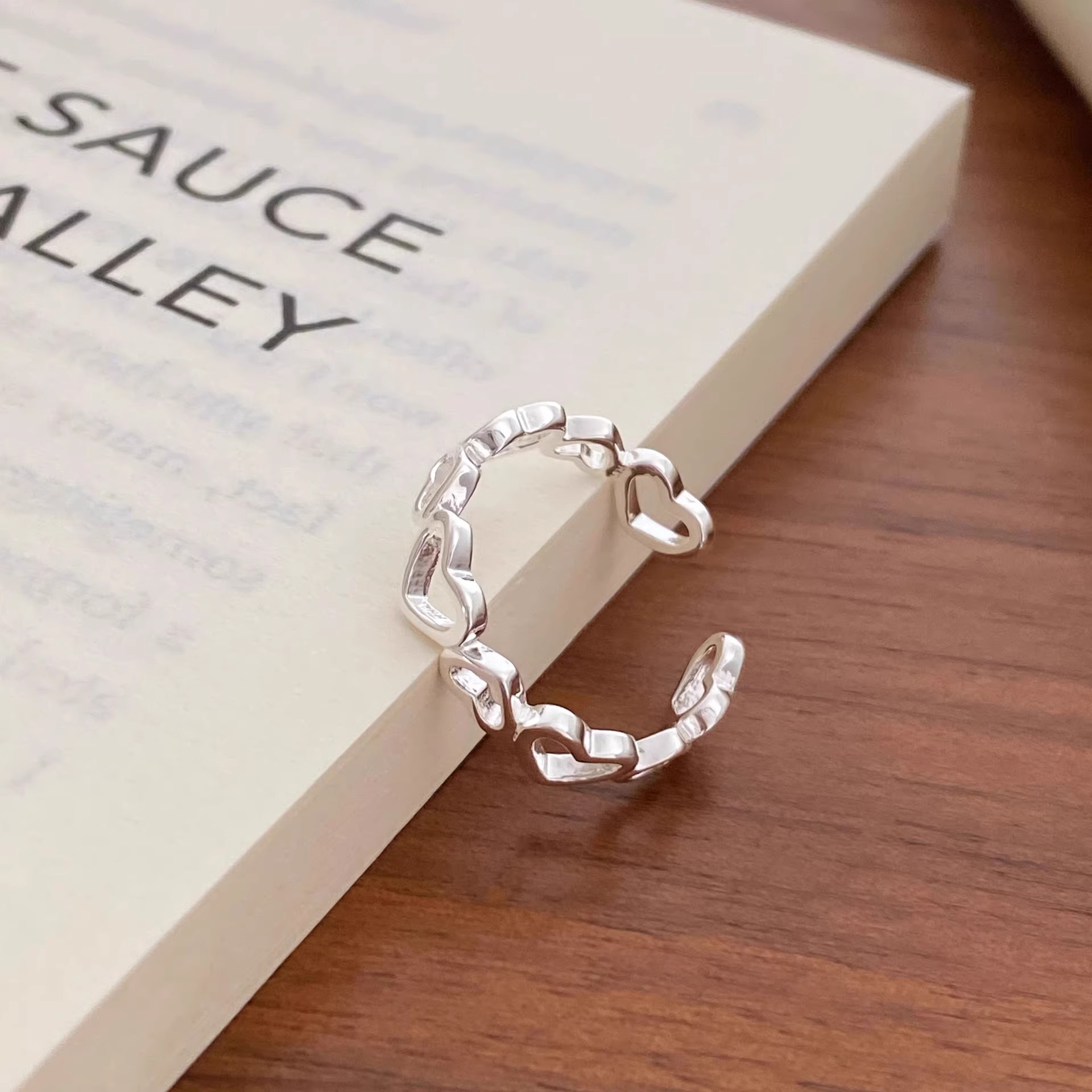 S999 Sterling Silver Patchwork Hollow Heart Ring