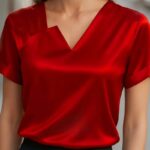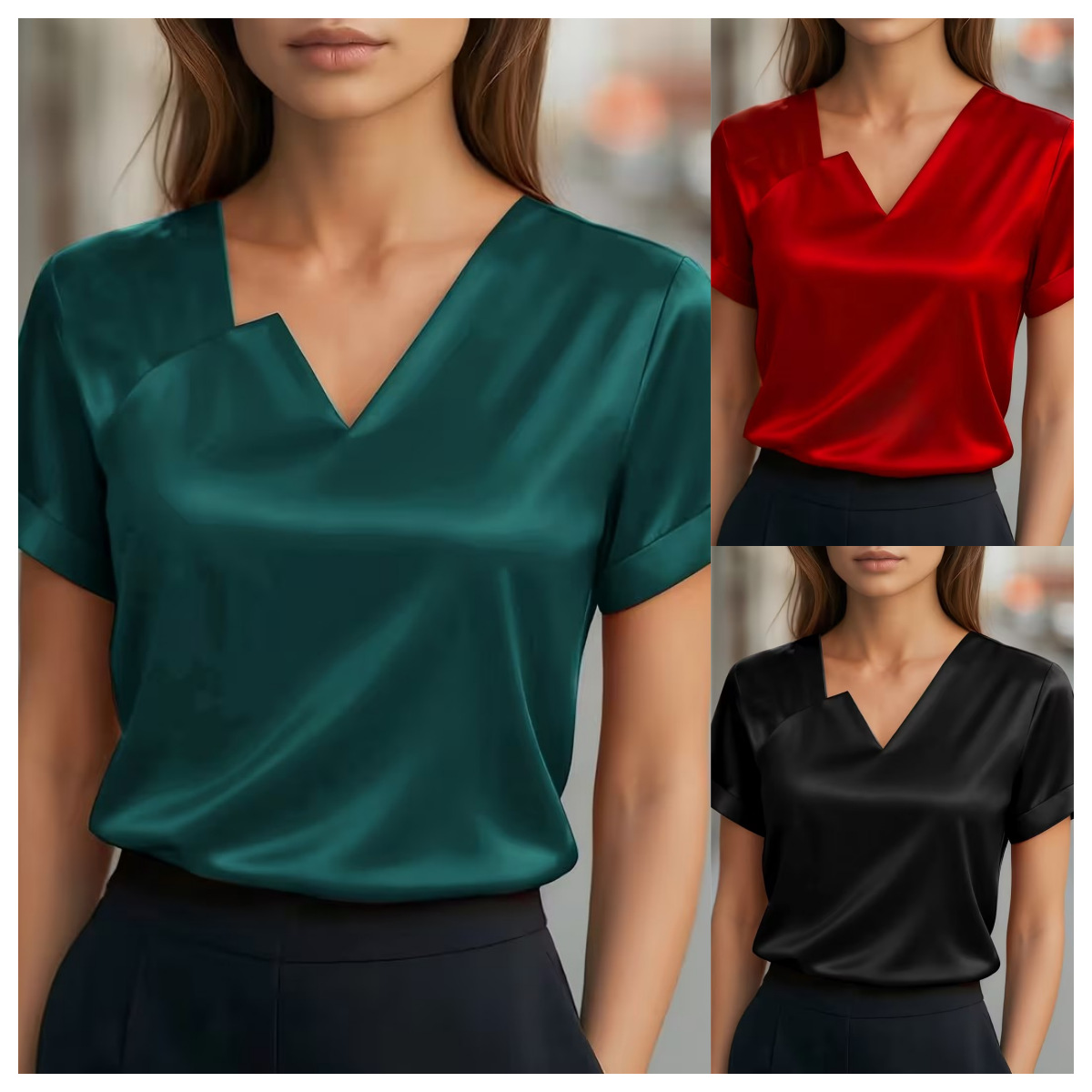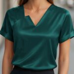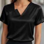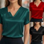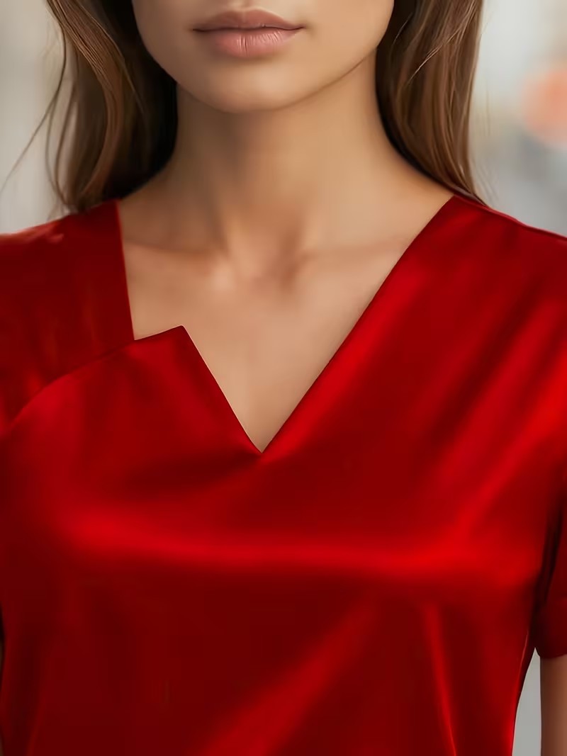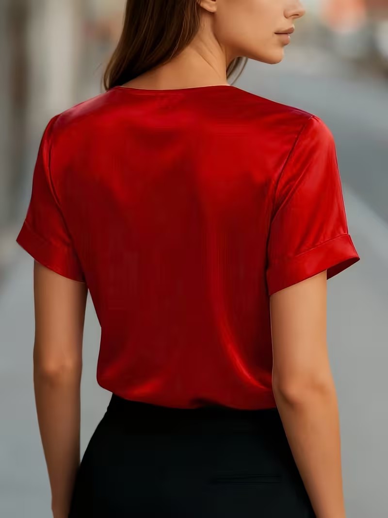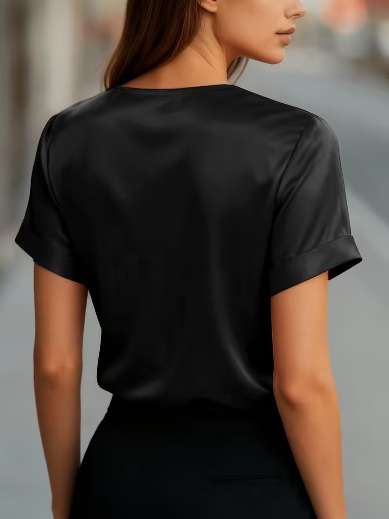 Satin Asymmetric V-Neck Short-Sleeve Shirt For Women is designed for style, comfort, and everyday use.