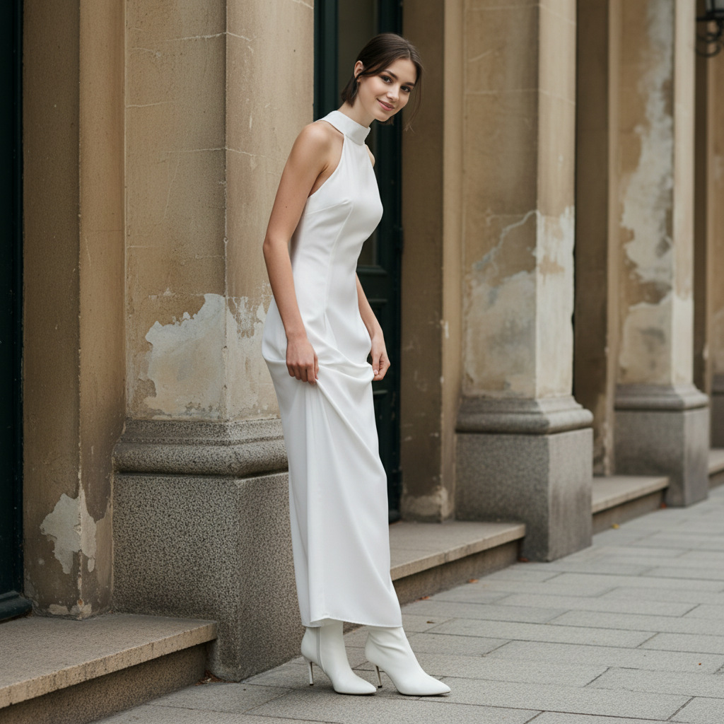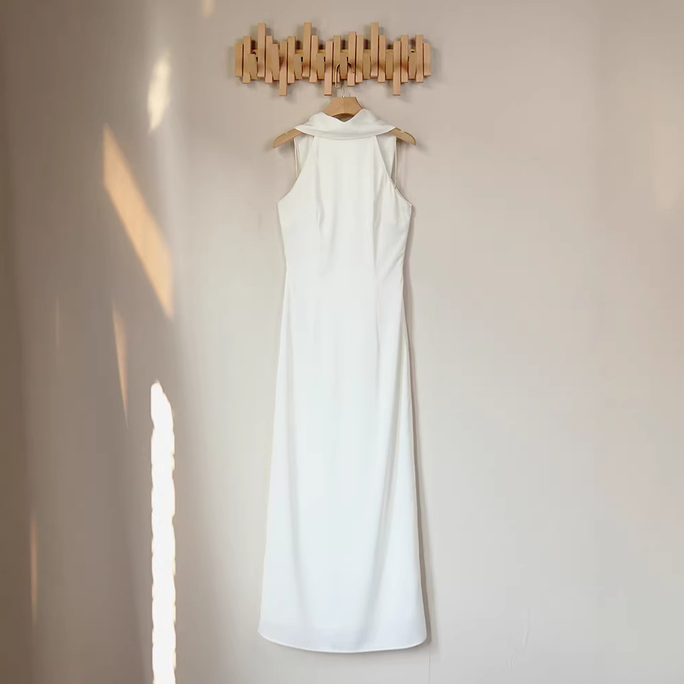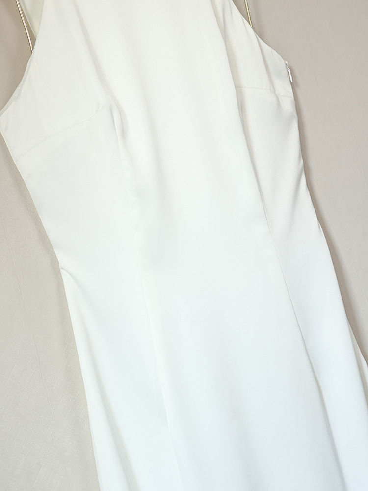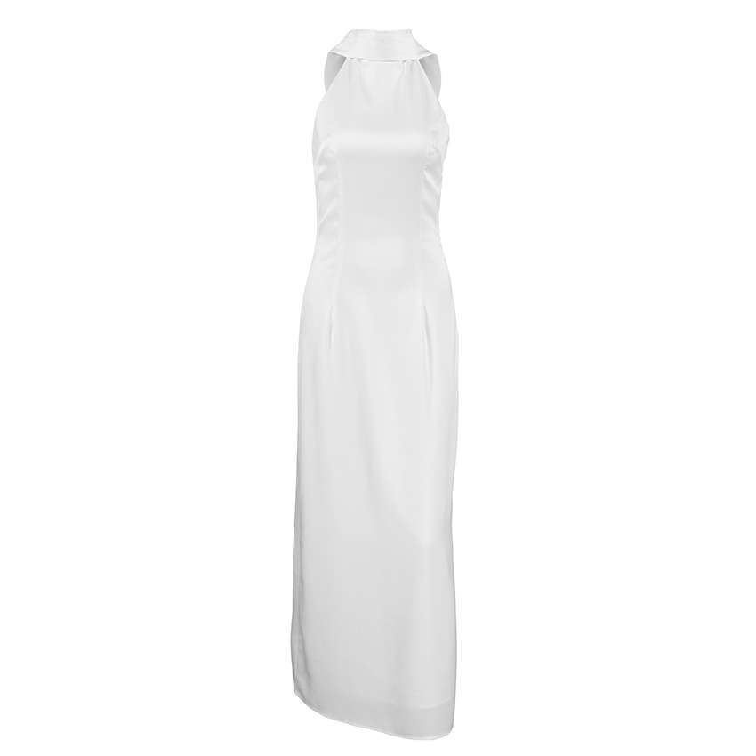 • Sheath dress, solid color, sleeveless, midi to long length with side slit