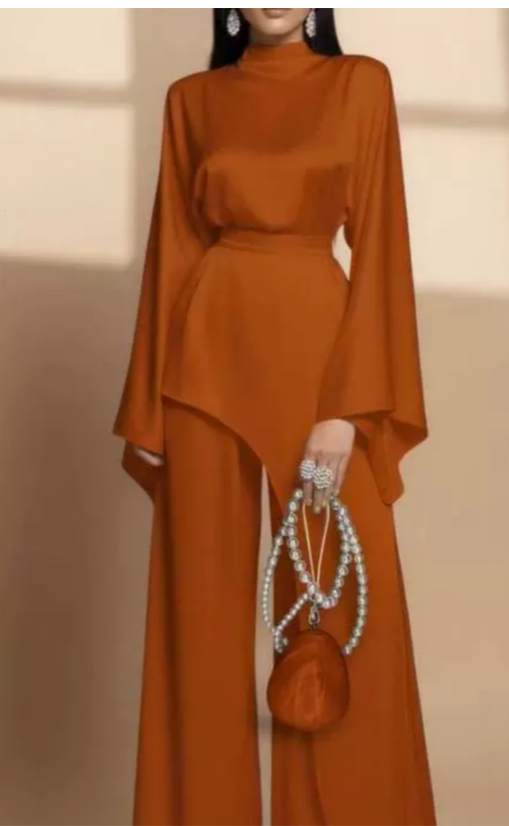 Satin High-Neck Asymmetric Waist Wide-Leg Pants Set is designed for style, comfort, and everyday use.