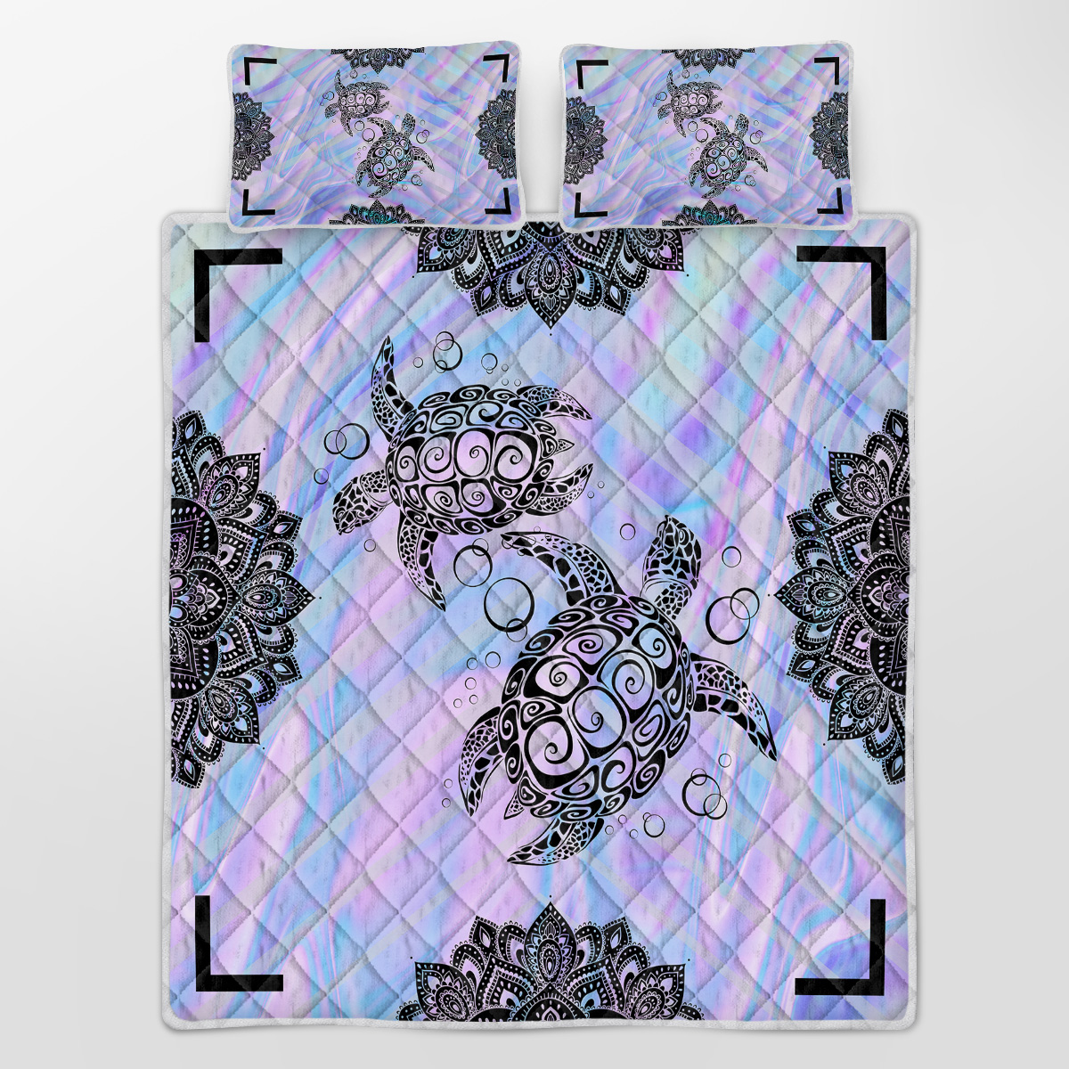 Sea Turtle Quilt Set 3 Piece, Lightweight Microfiber Coverlet Mandala Turtle Bedspread Purple Blue Bedspread Set,1 Quilt, 2 Pillow Shams is designed for style, comfort, and everyday use.